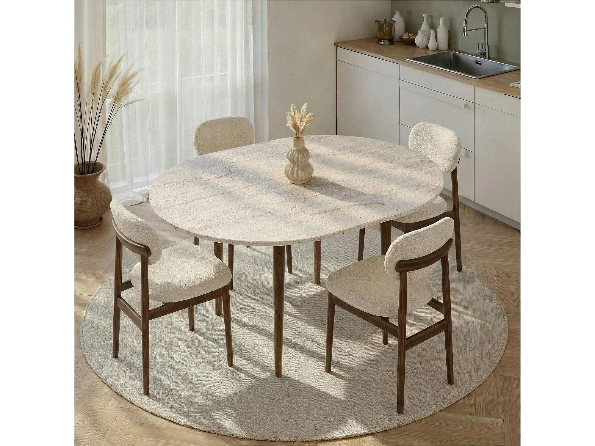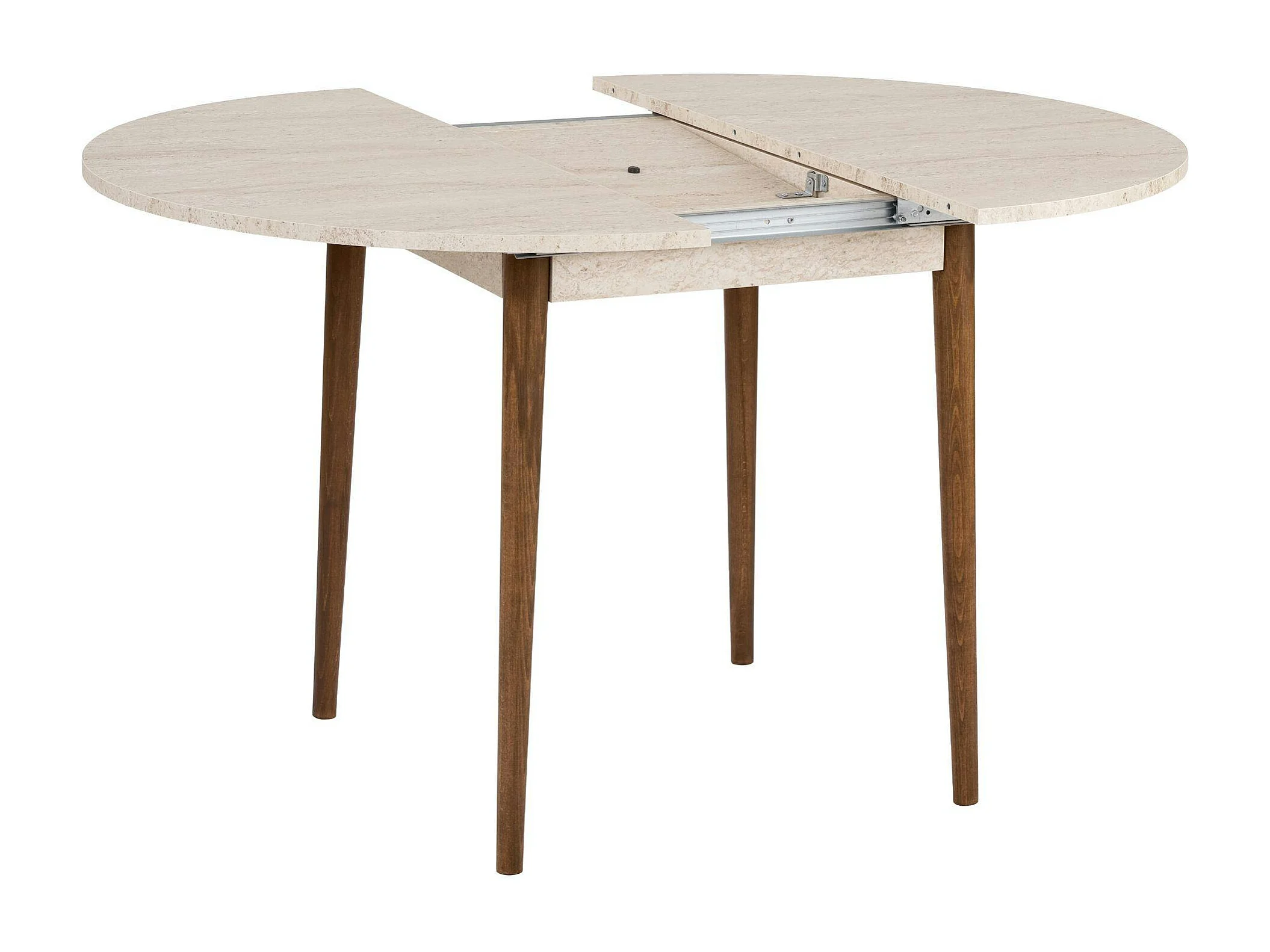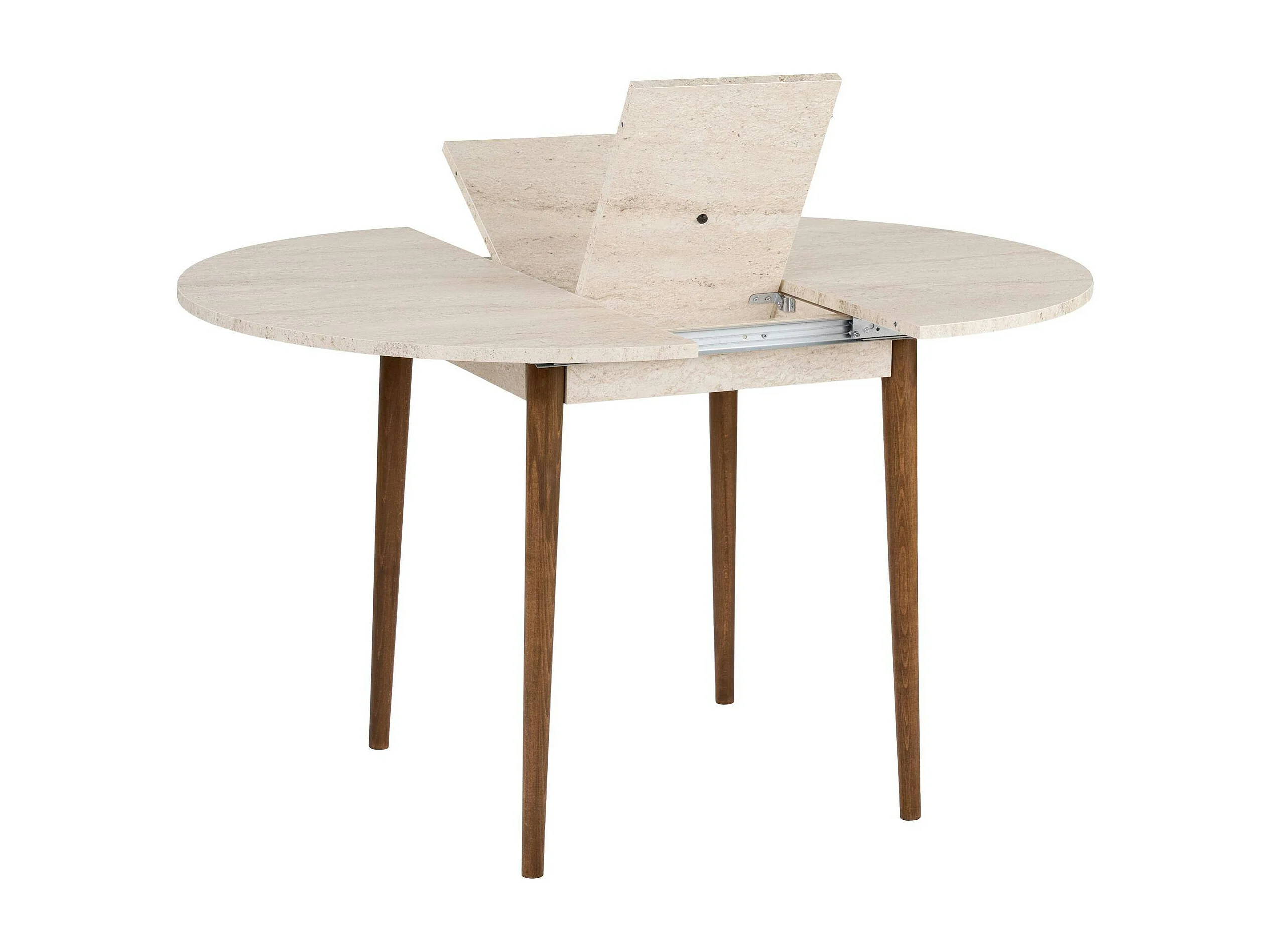 Table ronde extensible effet travertin et noyer 100-131 cm MARFA