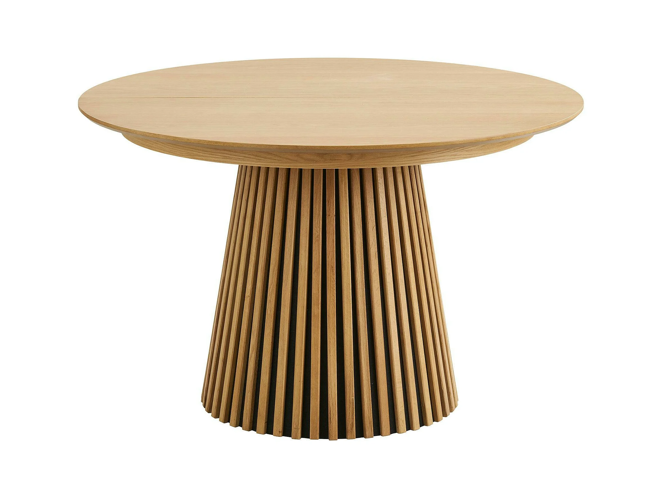 Table ronde extensible en chêne clair avec piètement baguette (2 rallonges incluses) ø120 cm / 160 cm / 200 cm AMSTERDAM