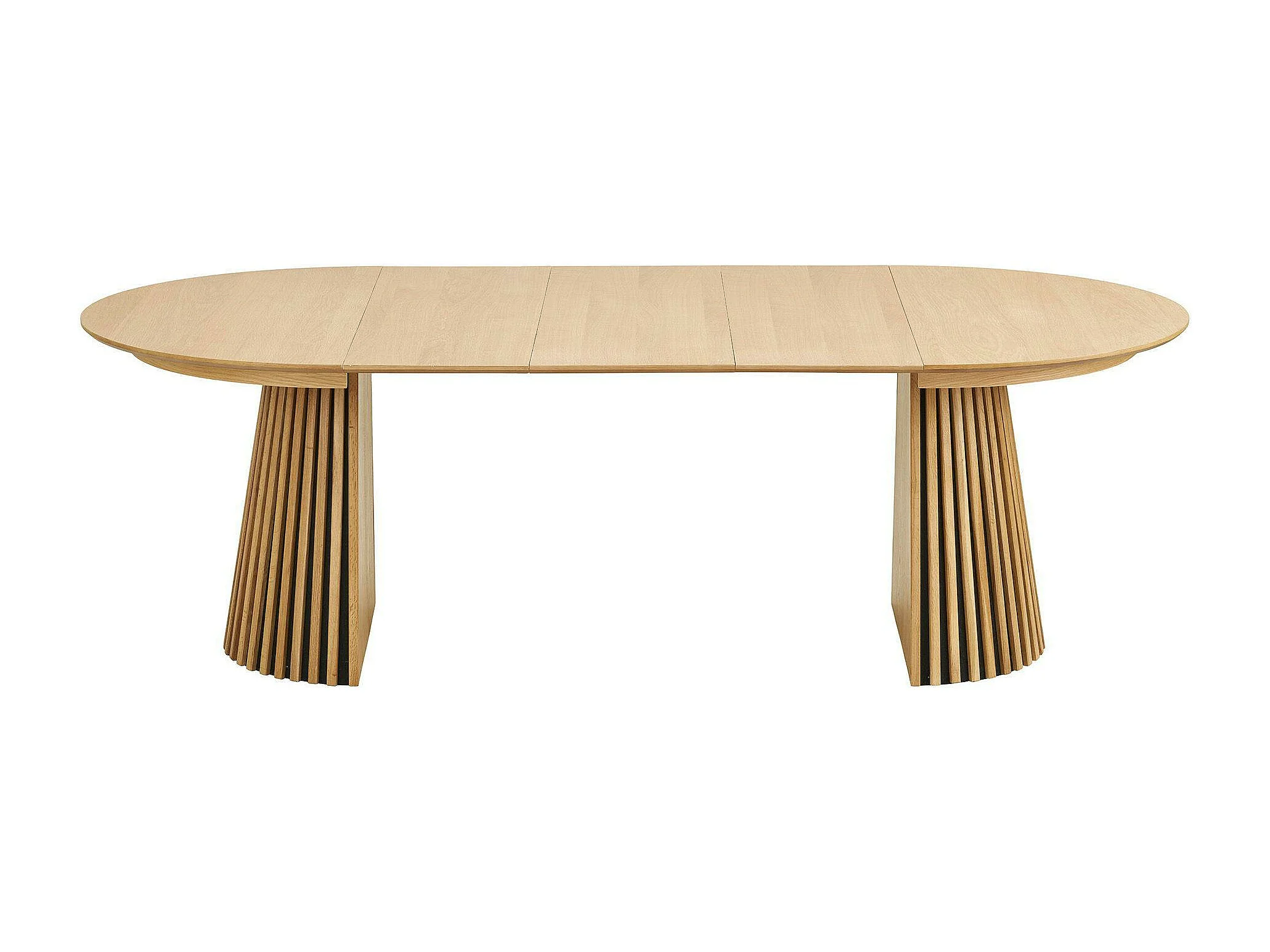Table ronde extensible en chêne clair avec piètement baguette (3 rallonges incluses) ø120 cm /160 cm / 200 cm / 240 cm AMSTERDAM