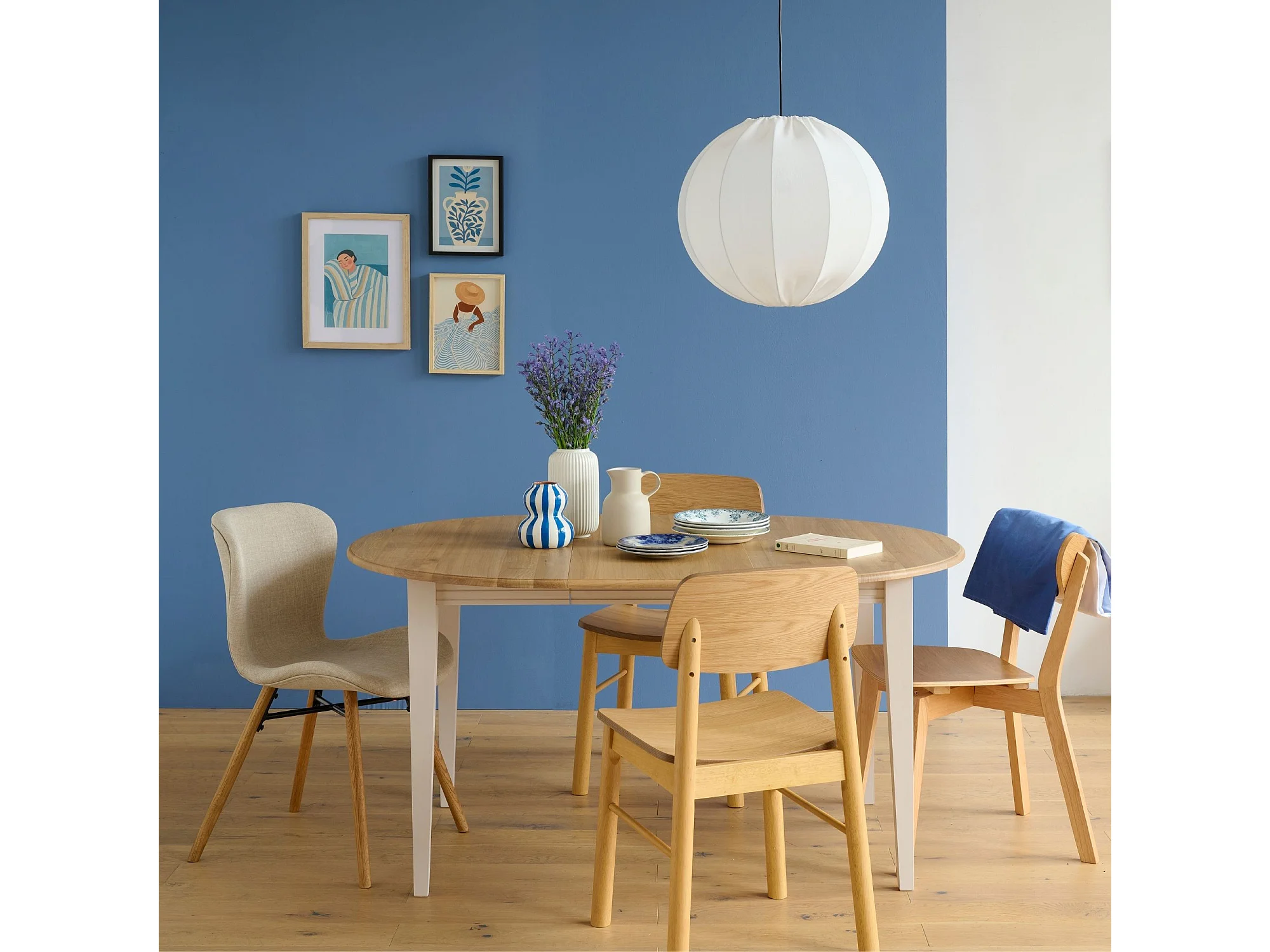 Table ronde extensible en chêne/grège 4/6 places D105 pieds fuseau - VICTORIA