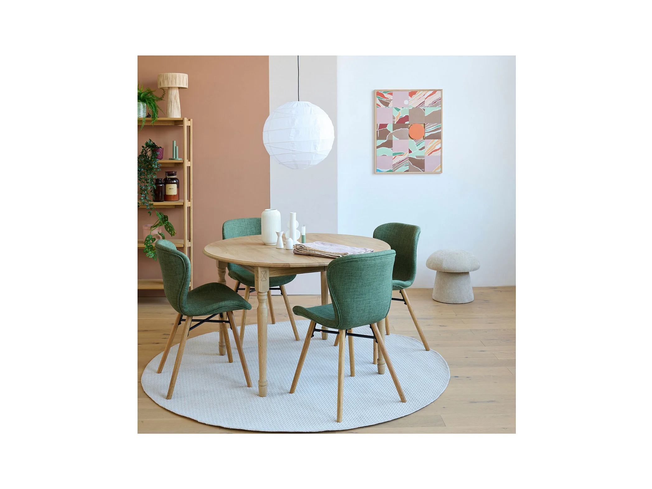 Table ronde extensible pieds tournés D105 + 4 chaises tissu - VICTORIA