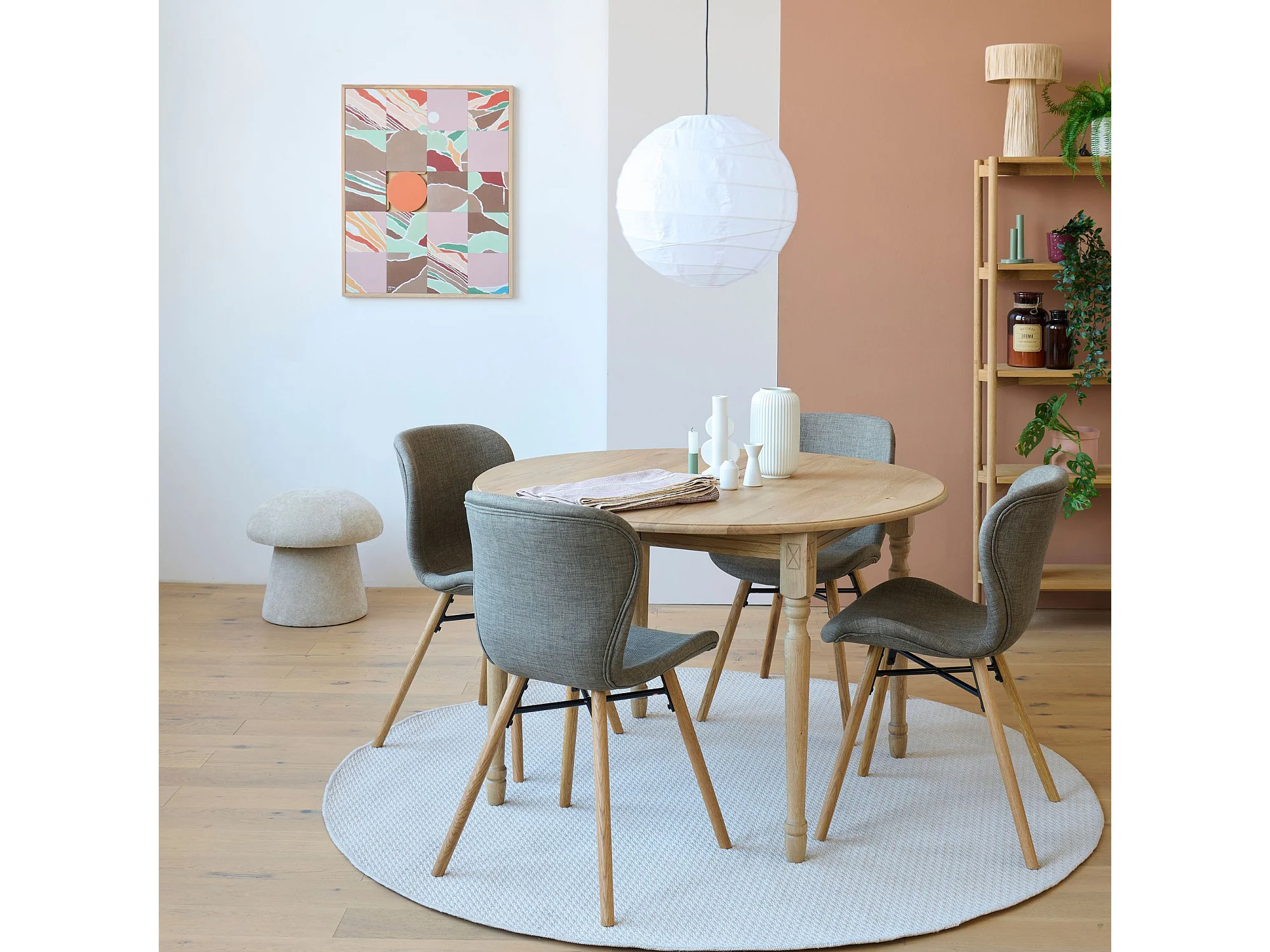 Table ronde extensible pieds tournés D115 + 4 chaises tissu - VICTORIA