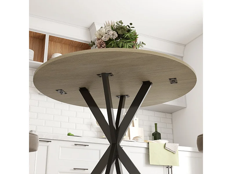 Table ronde industrielle, avec pieds en acier, pour 2 personnes, bois, couleur chêne (Ø80x75 cm)