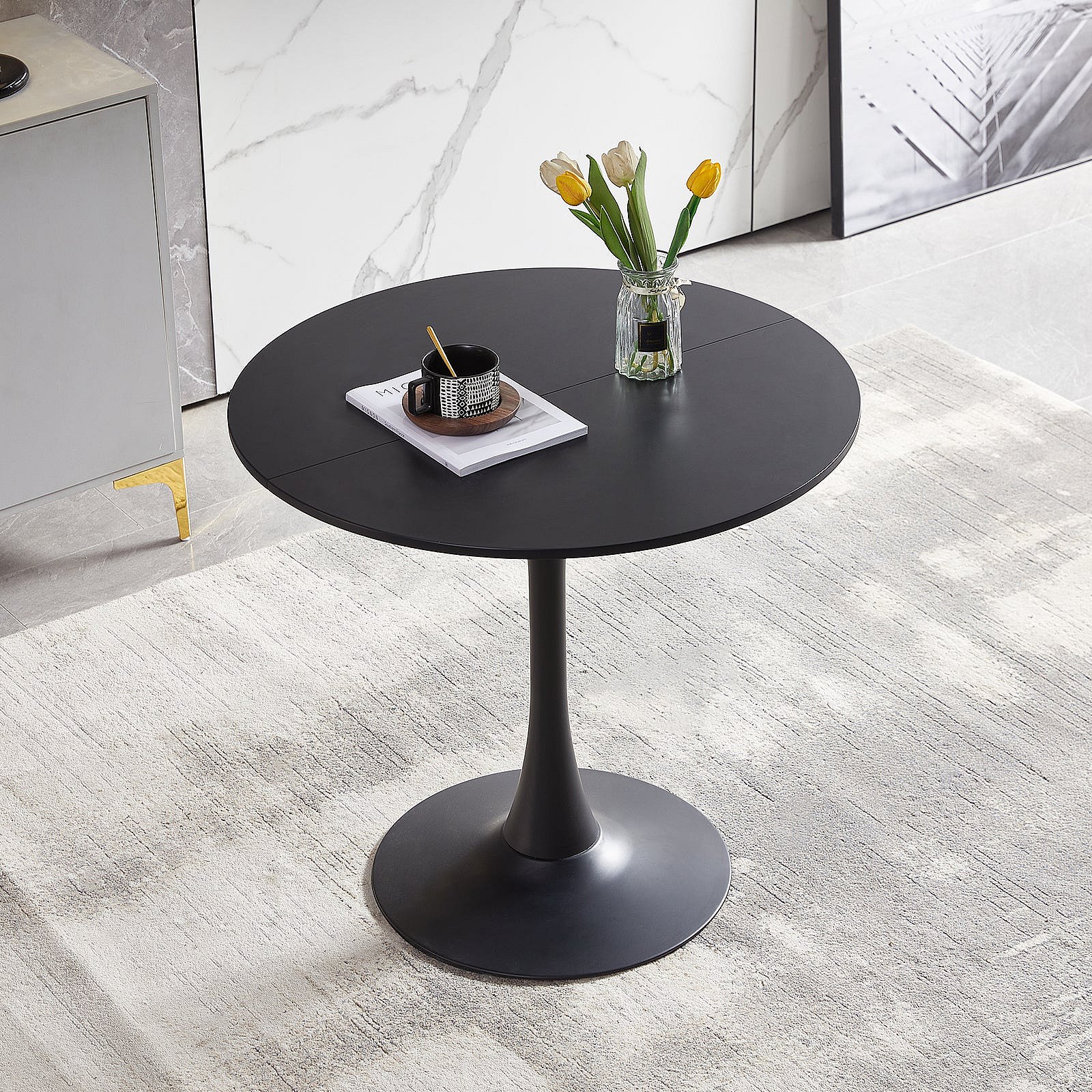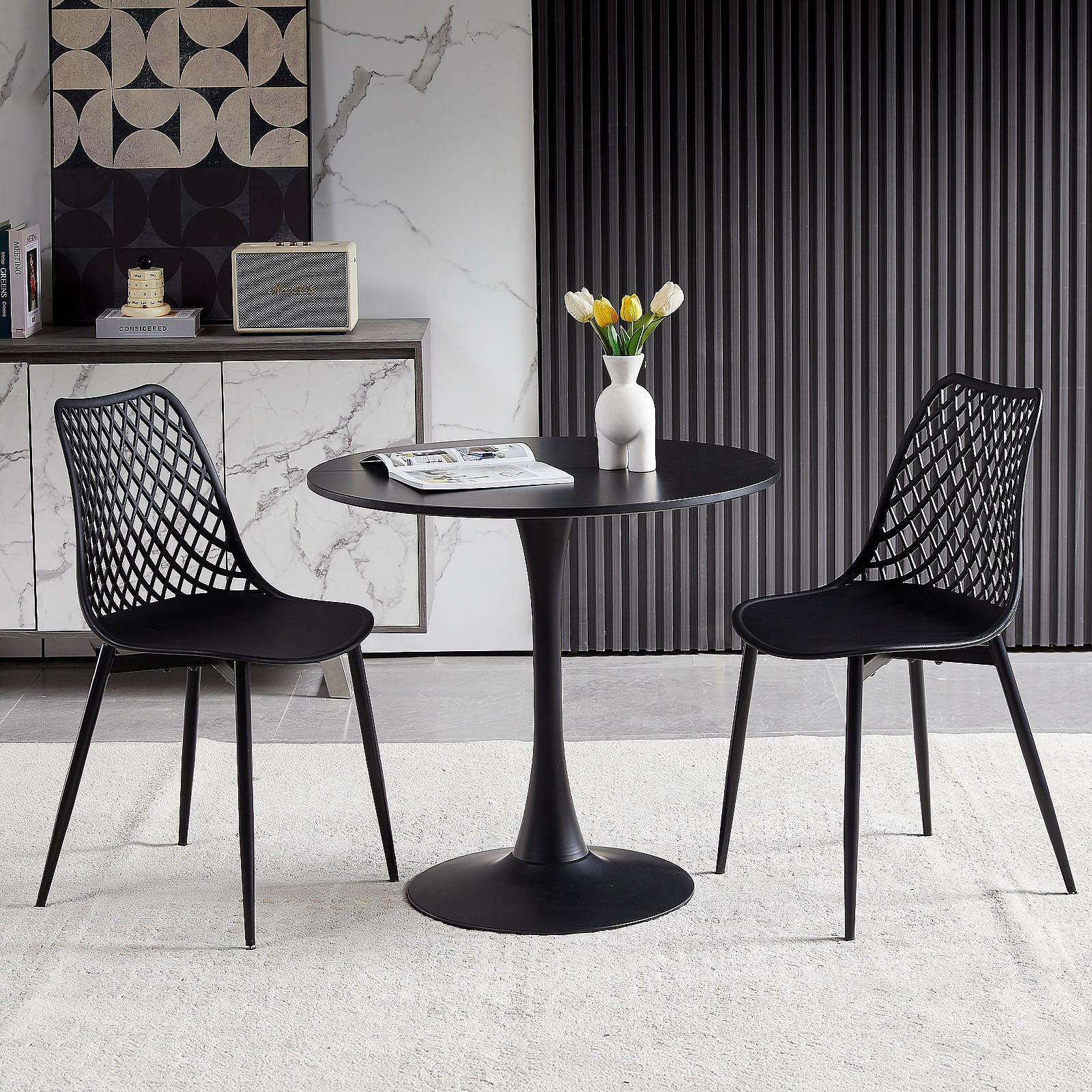 Table Ronde Noir Loisirs Table à Manger Scandinave Balcon Petite Table Ronde(Size:80x80x73cm)