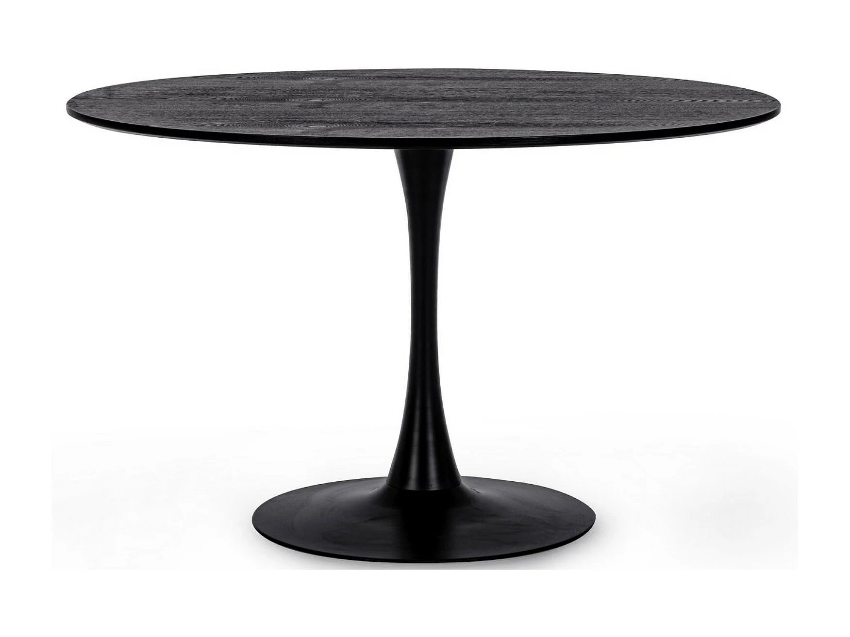 Table ronde plateau noir avec veinure effet bois et pied acier noir Kulipa 120cm