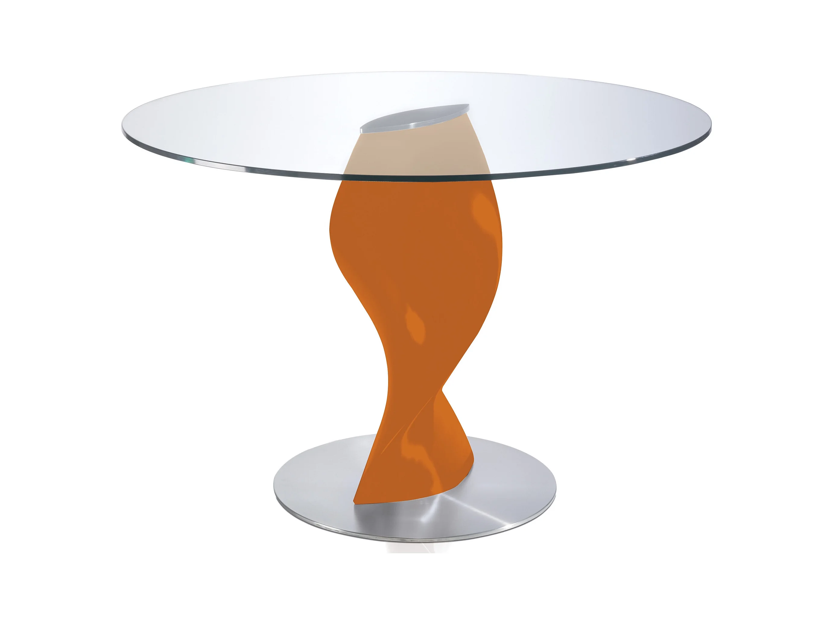Table ronde plateau verre et pied fibre de verre laqué orange Torsada-Dimensions D 120 x H 76 cm