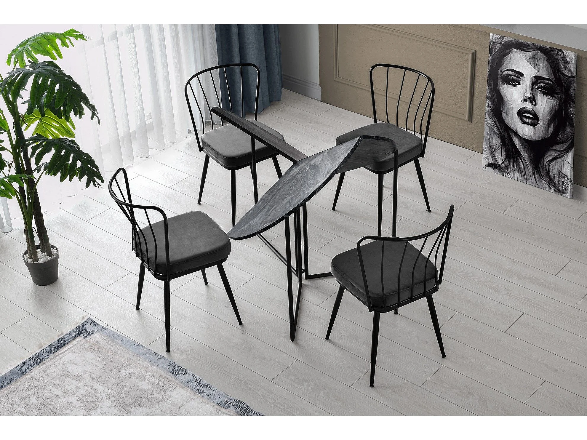 Table ronde pliable gain de place Origami Ø100cm Effet marbre noir et Métal Noir