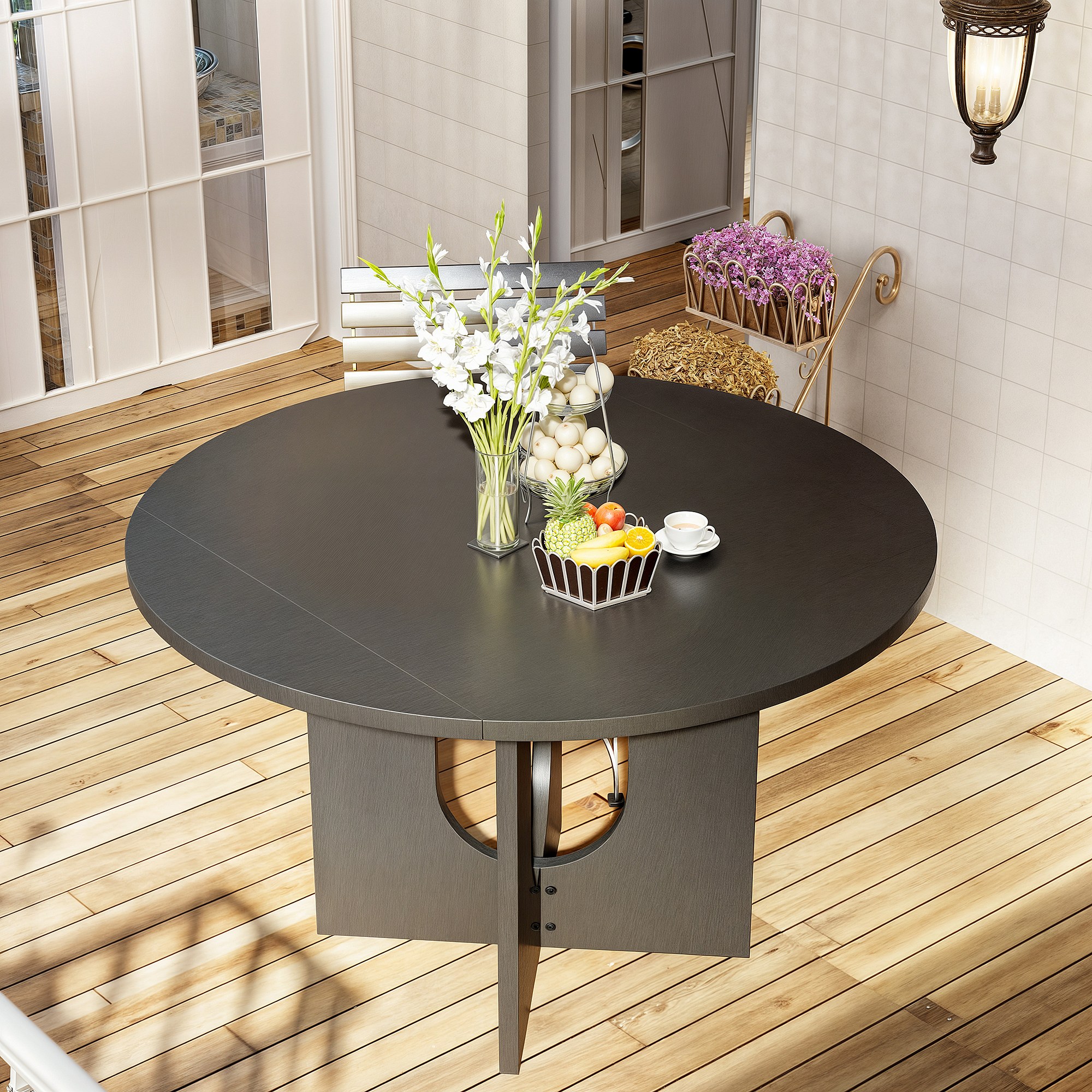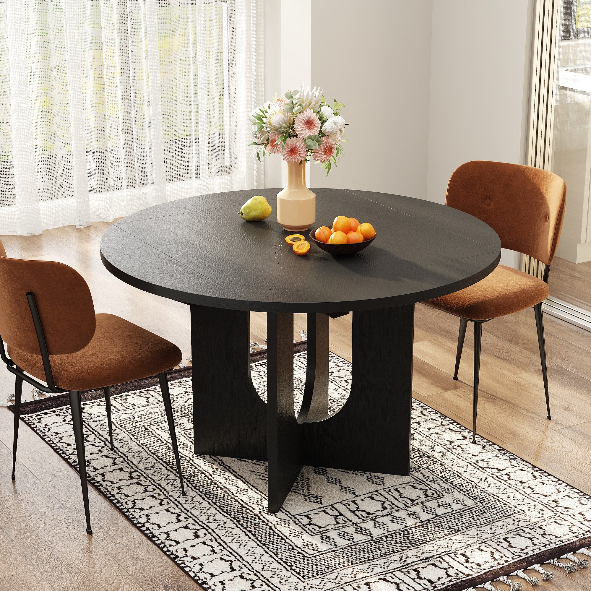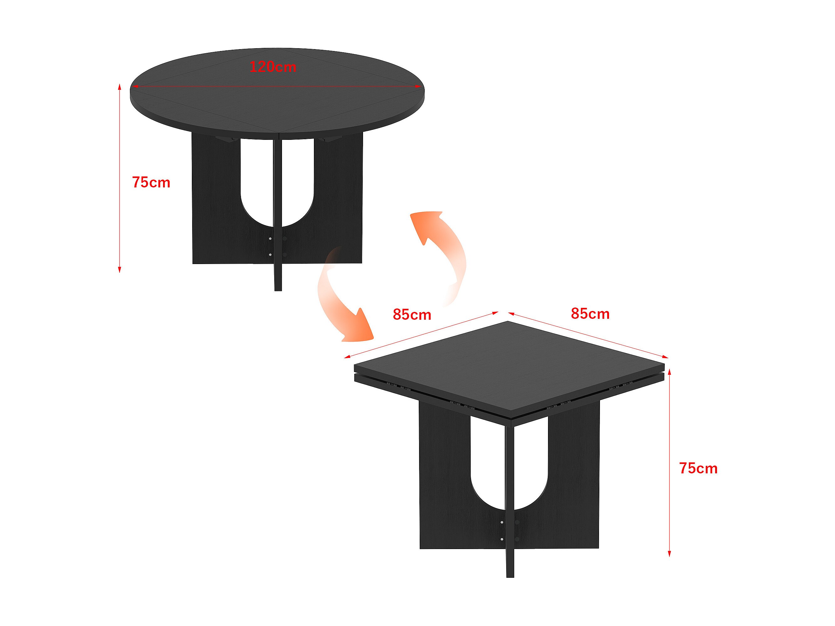 Table à Manger avec Pieds Renforcés en croix, Table Ronde Pliable avec Aspect du Bois, 120 x 120 x 75 cm, Noir