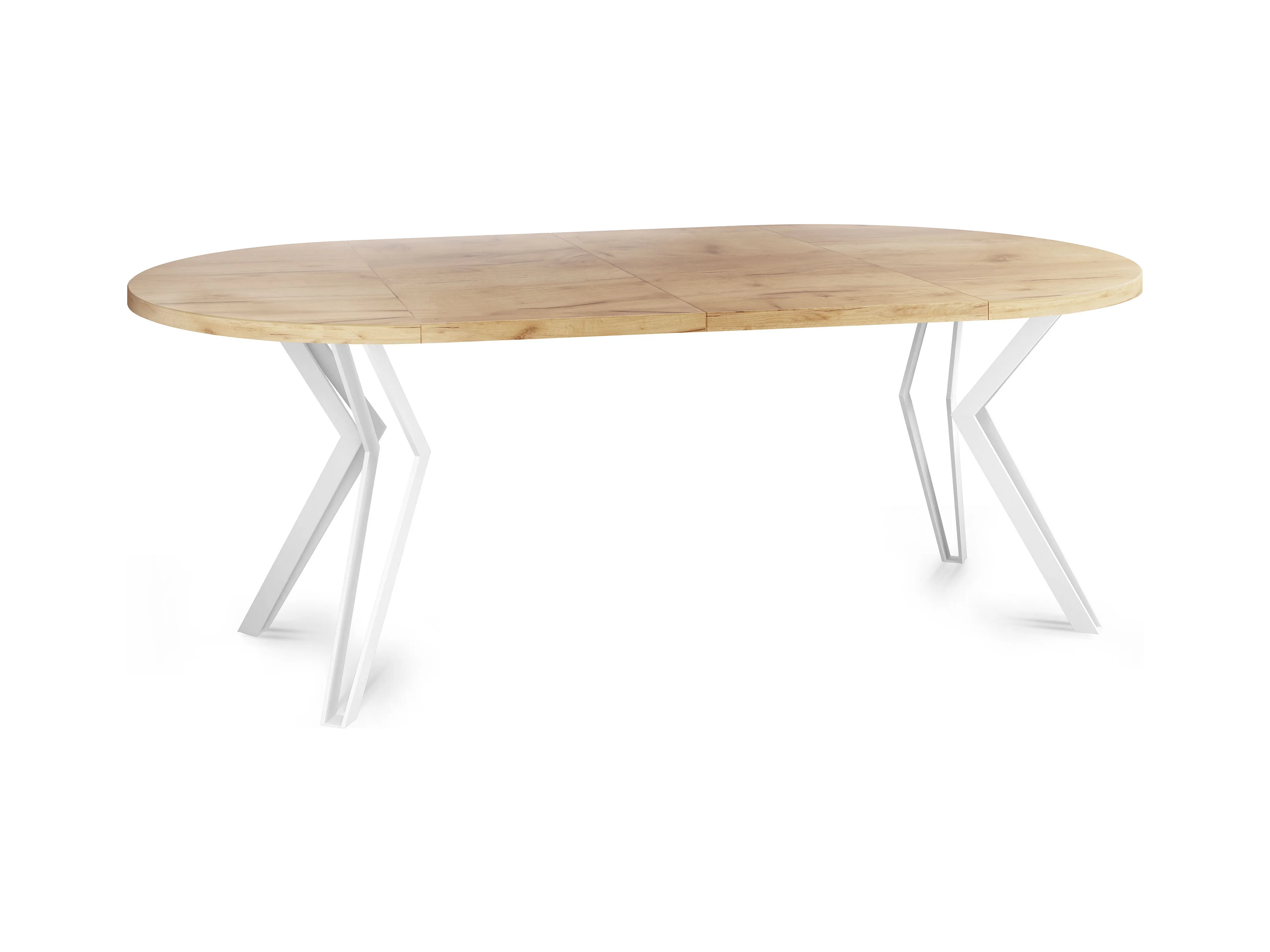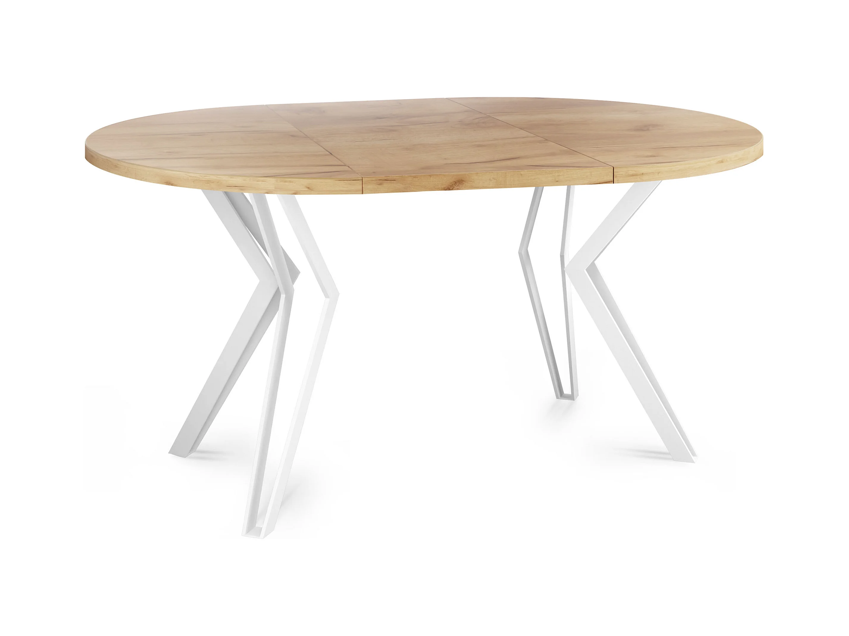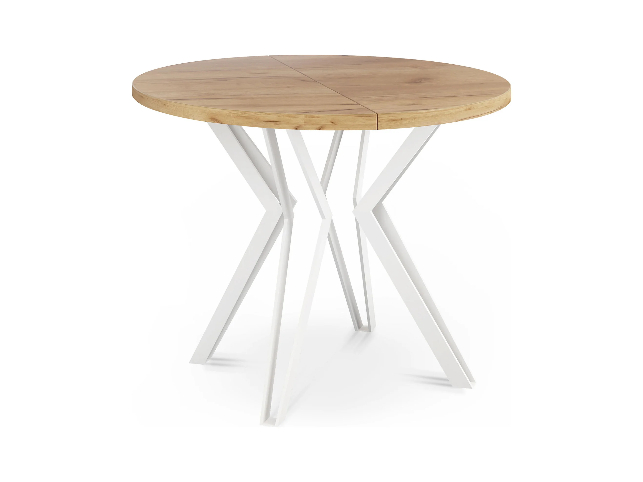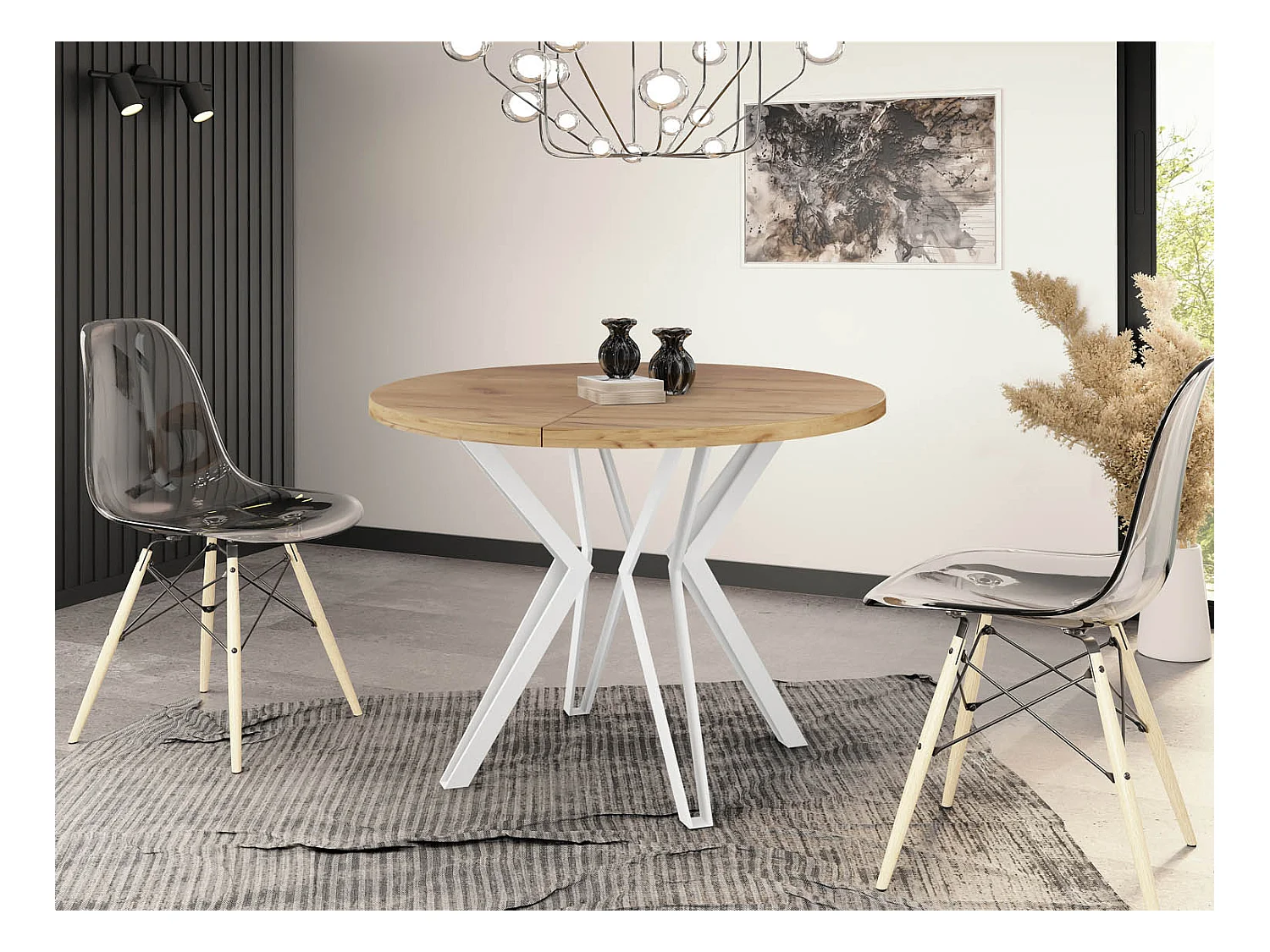 Table Ronde Salle à Manger - 100/176 cm de Diamètre - Table à Rallonges avec Pieds en Métal Blanc - Style Industriel - Compacte - Chêne Craft