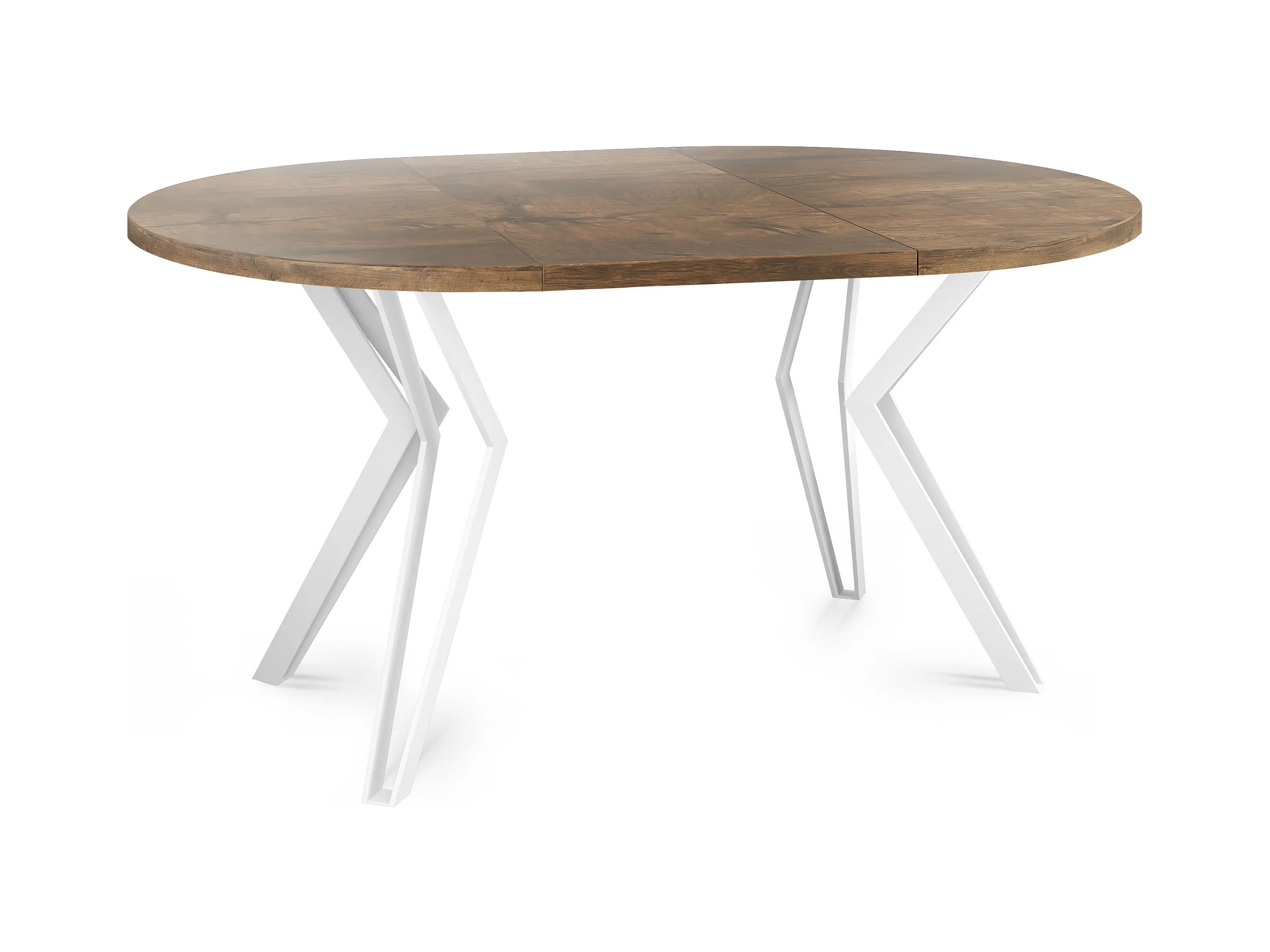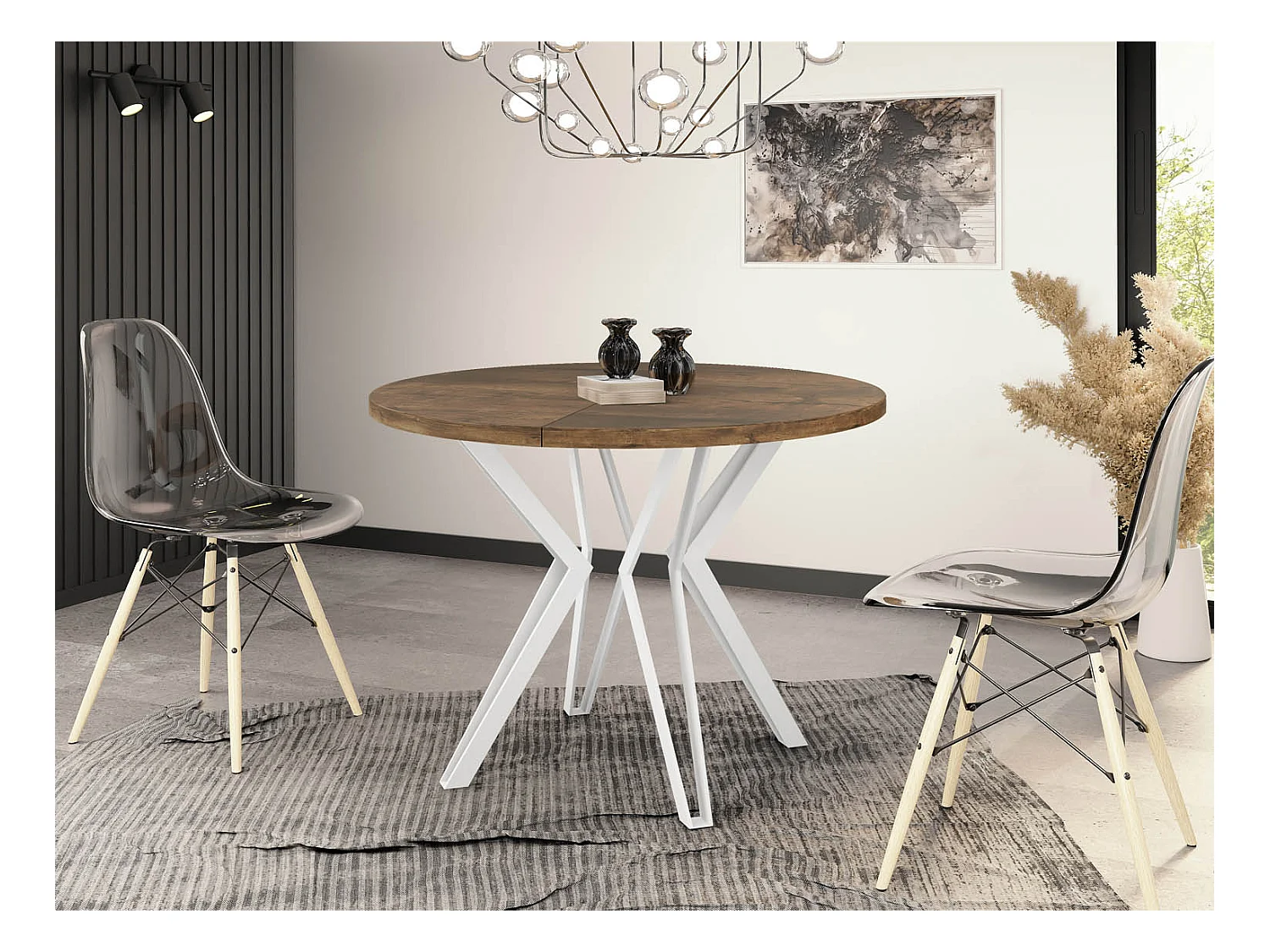 Table Ronde Salle à Manger - 100/176 cm de Diamètre - Table à Rallonges avec Pieds en Métal Blanc - Style Industriel - Compacte - Chêne Lefkas