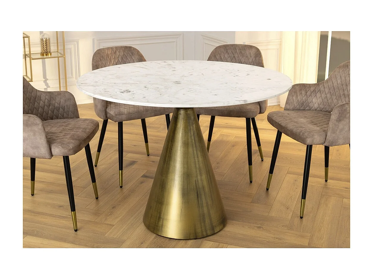 Table ronde SOLEA – Marbre blanc et pied or – Chic et moderne