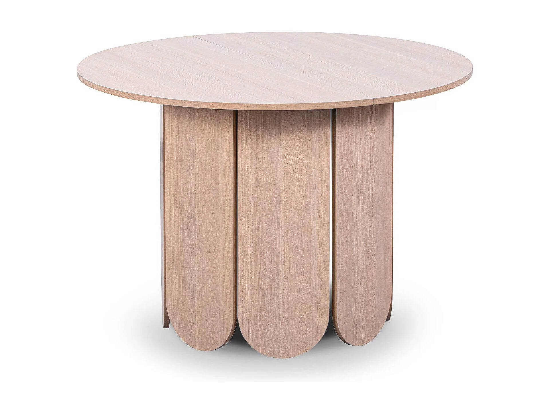 Table ronde style japandi extensible 310cm Tulipa rallonges intégrées Bois clair