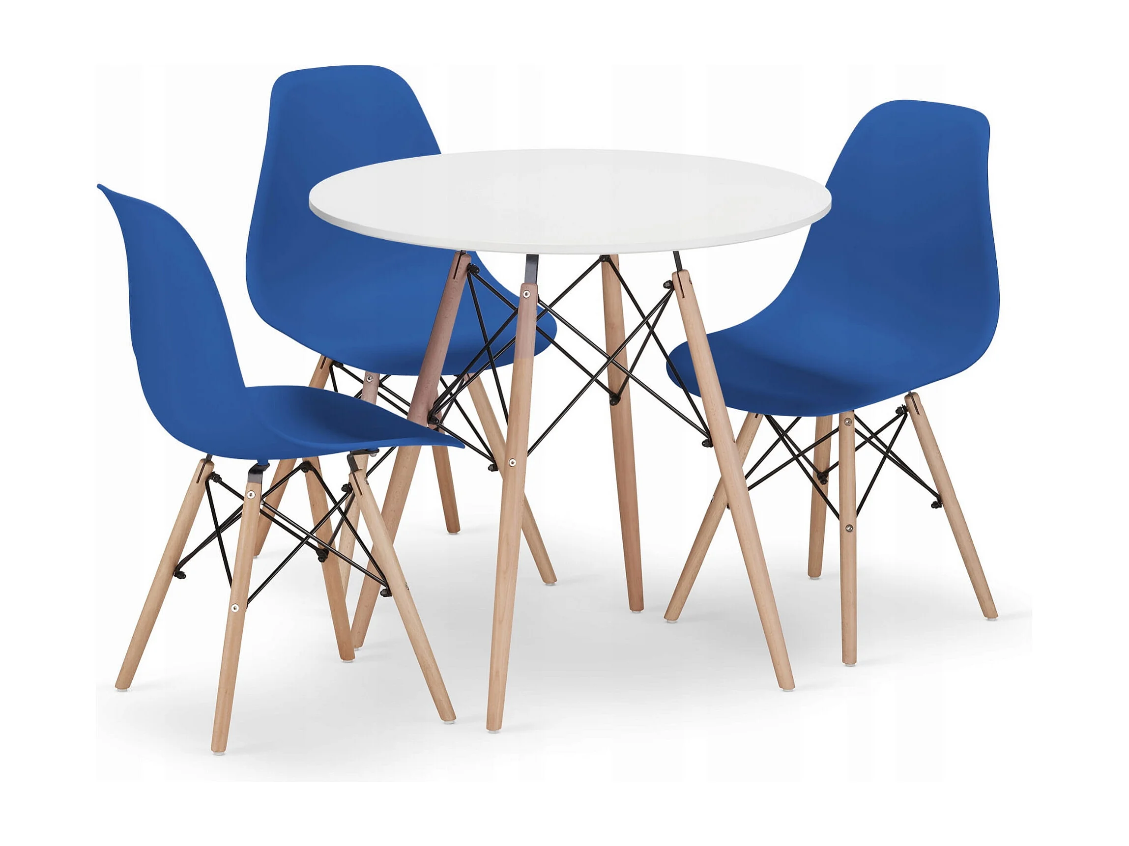 Table ronde Valora KOVA Ø80 blanche + 3 chaises OSAKA bleues