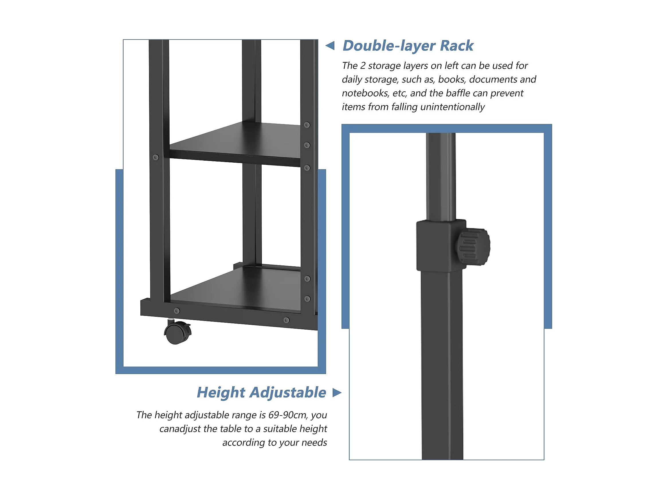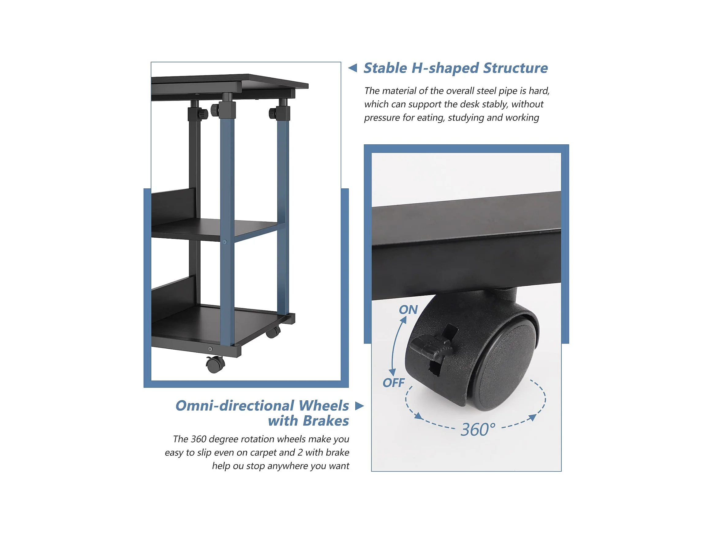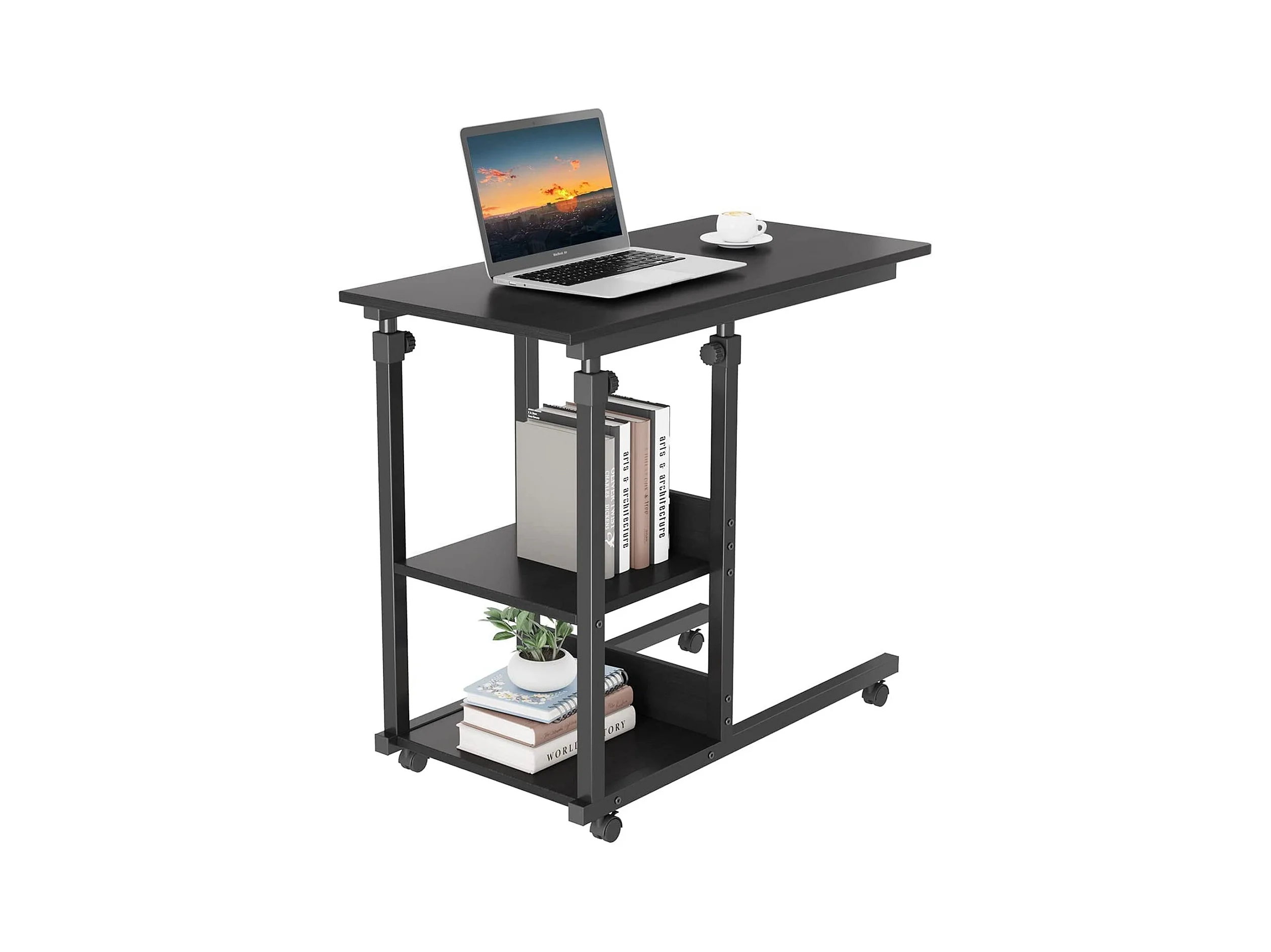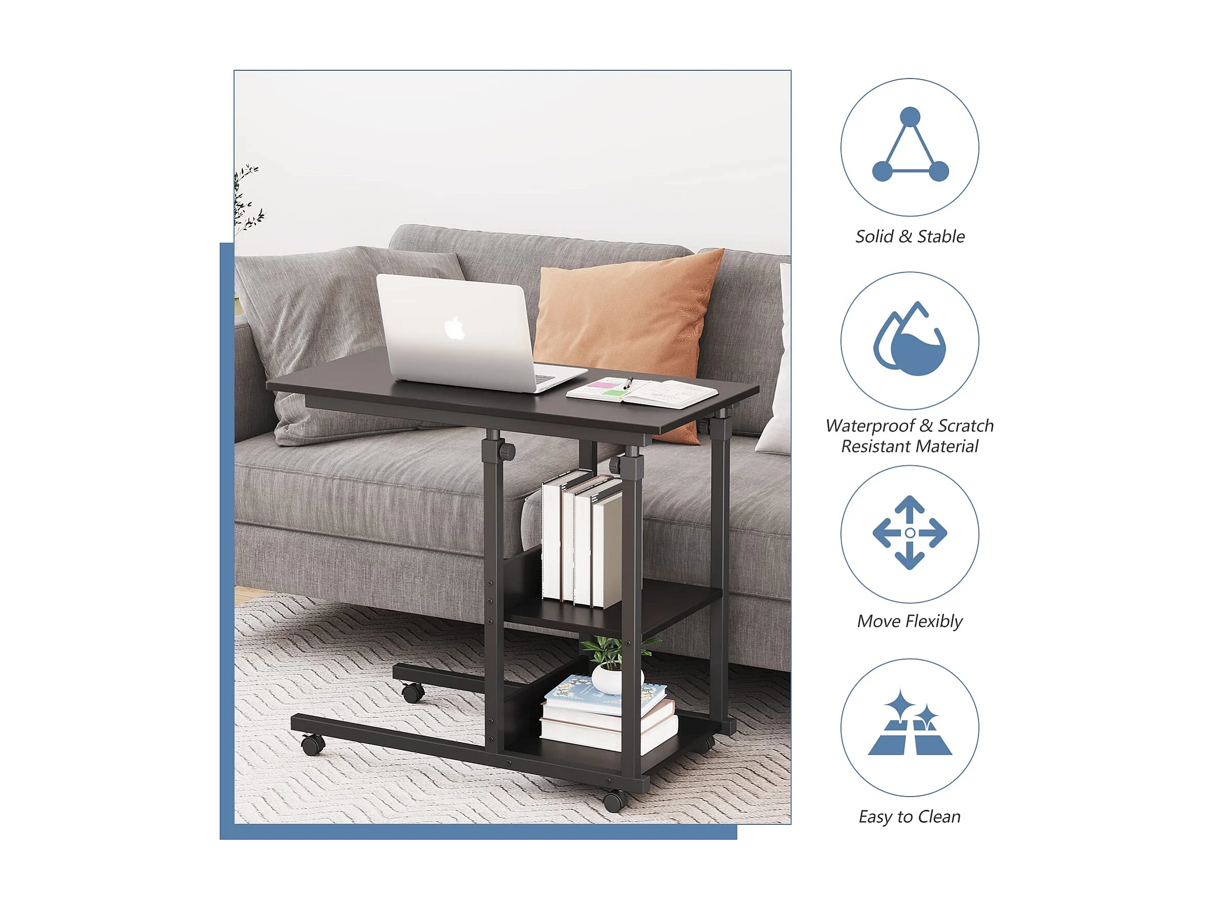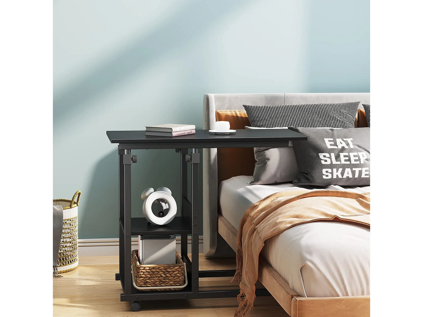 Table Roulante, Table d'Appoint Mobile Réglable en Hauteur, Table Multiusage avec 4 roulettes et 2 Étagères de Rangement pour Canapé/Lit/Balcon-Noir