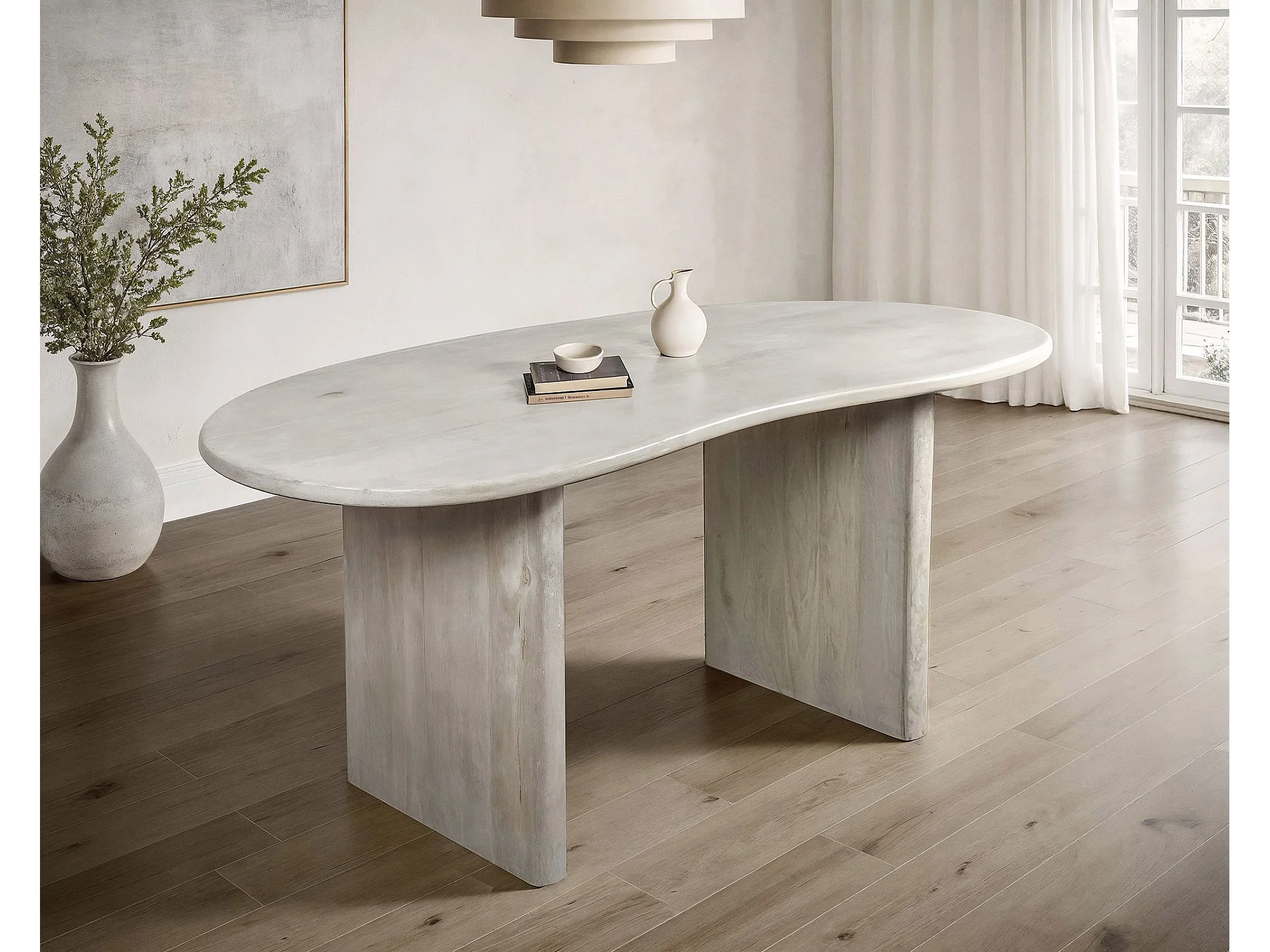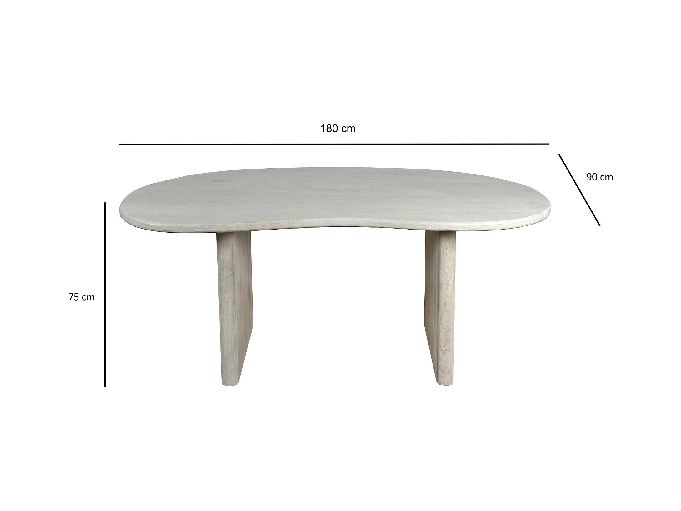 Table Salle à Manger 180x90 cm Bois de Manguier Blanc Design Rétro