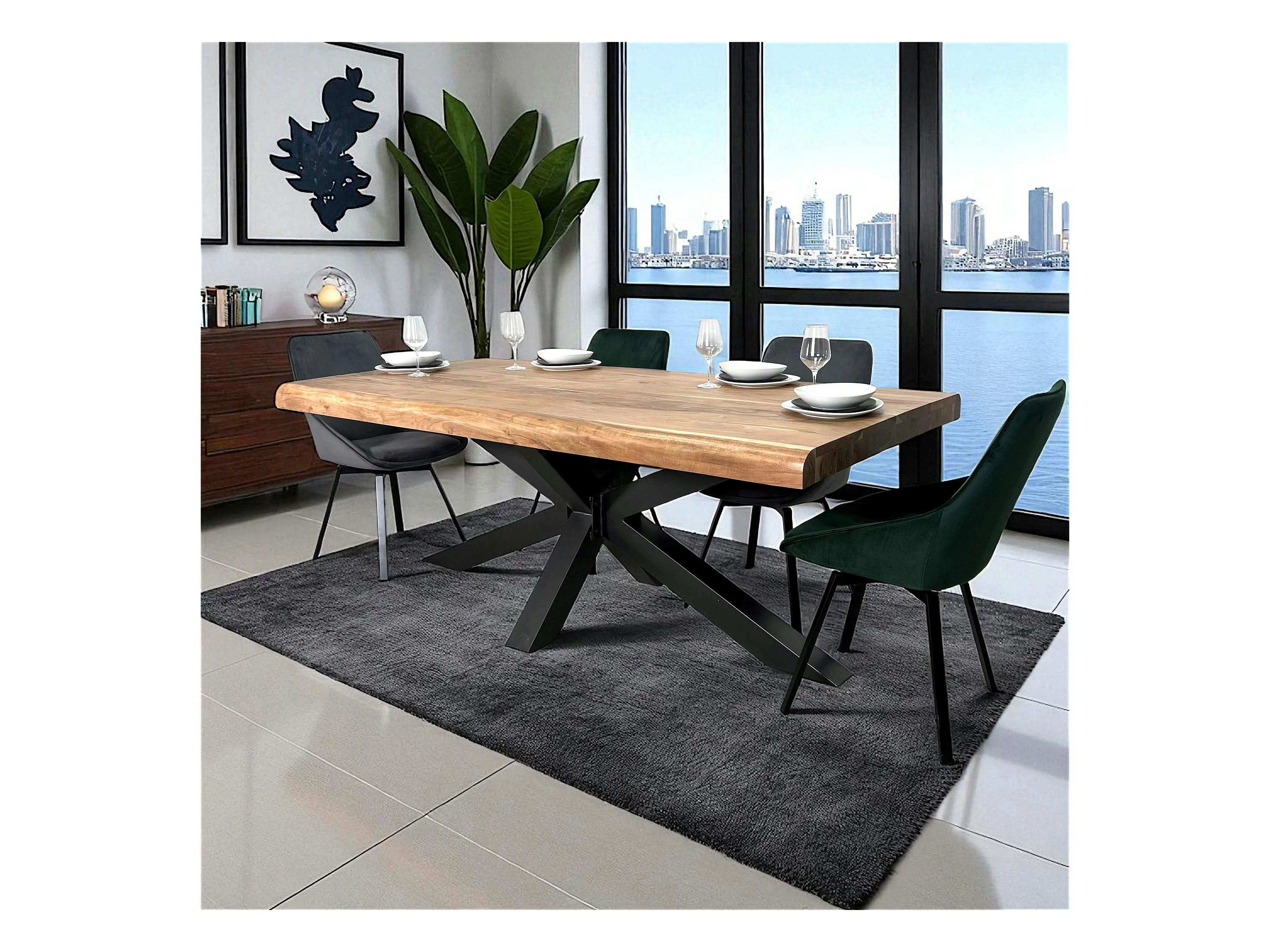 Table salle à manger bois massif pied mikado 200 cm MELBOURNE