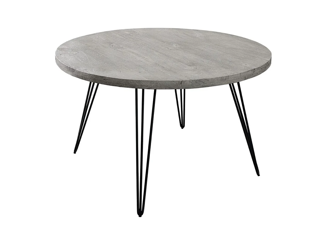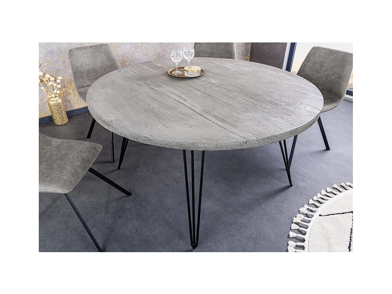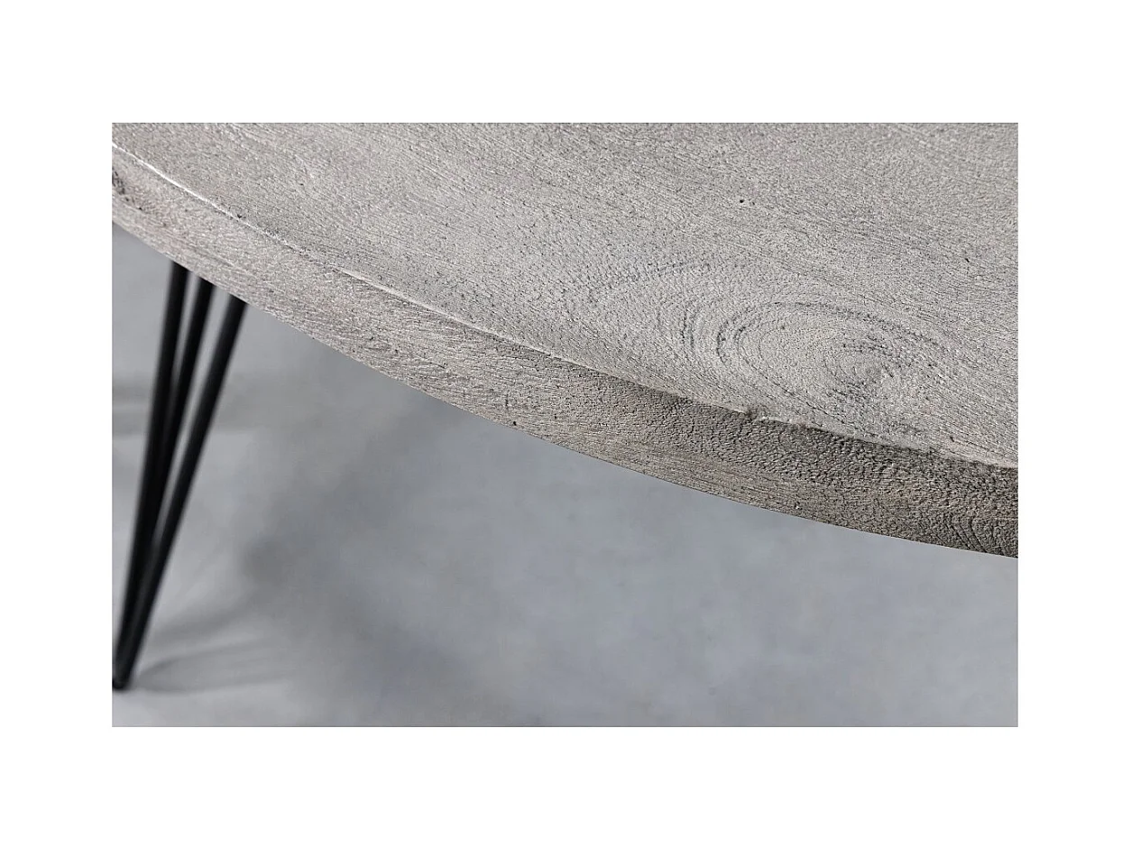 Table SILVA – Bois de manguier gris et métal noir – 80 cm – Forme ronde – Style contemporain