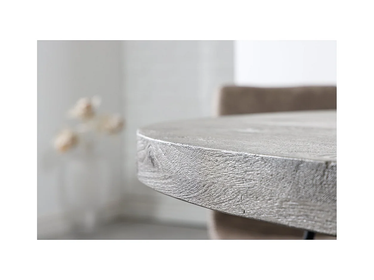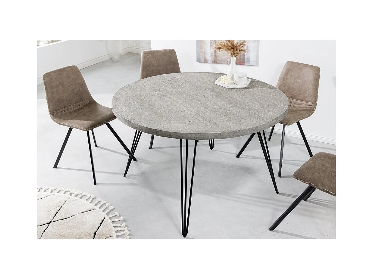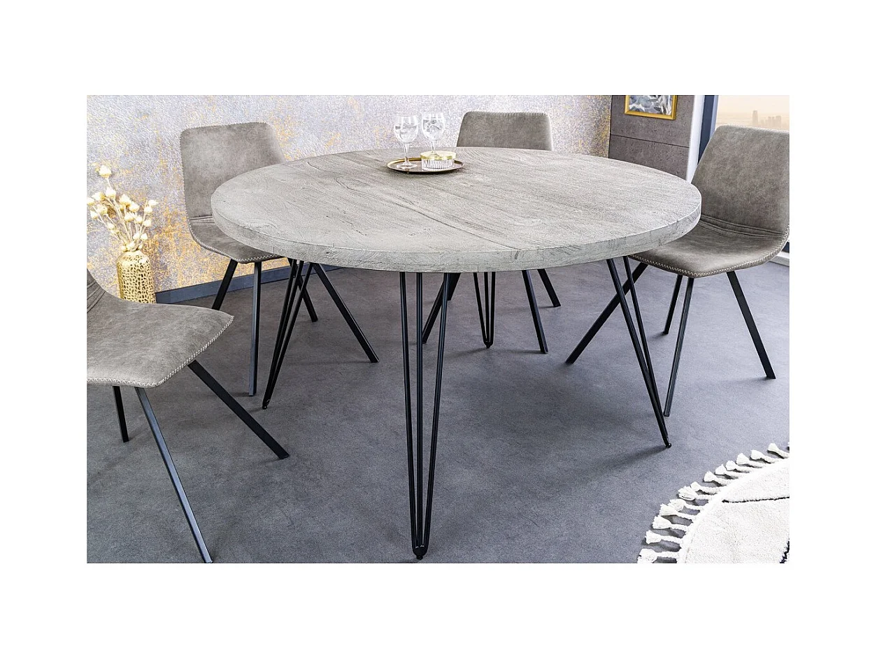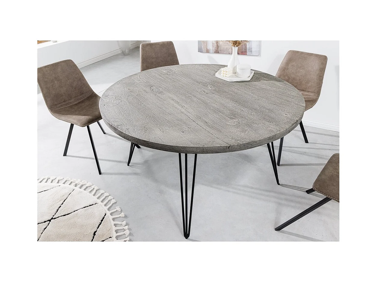 Table SILVA – Bois de manguier gris et métal noir – 80 cm – Forme ronde – Style contemporain