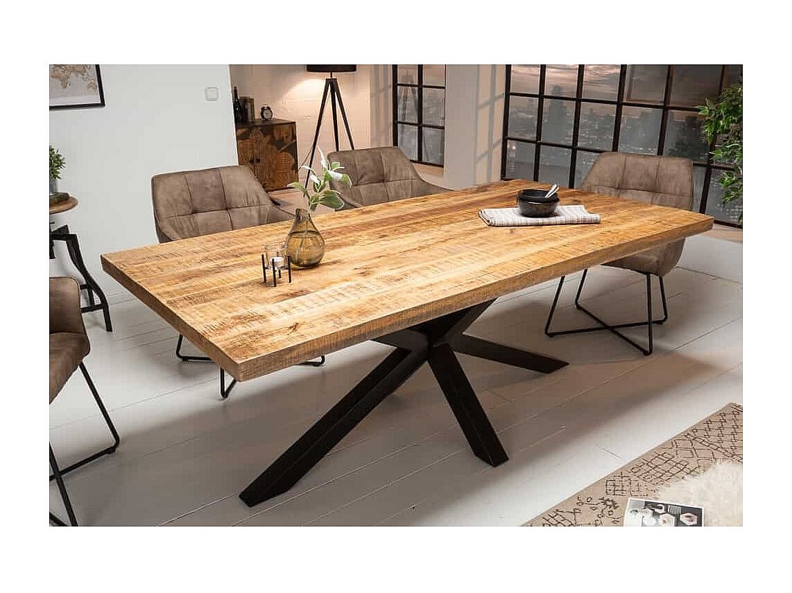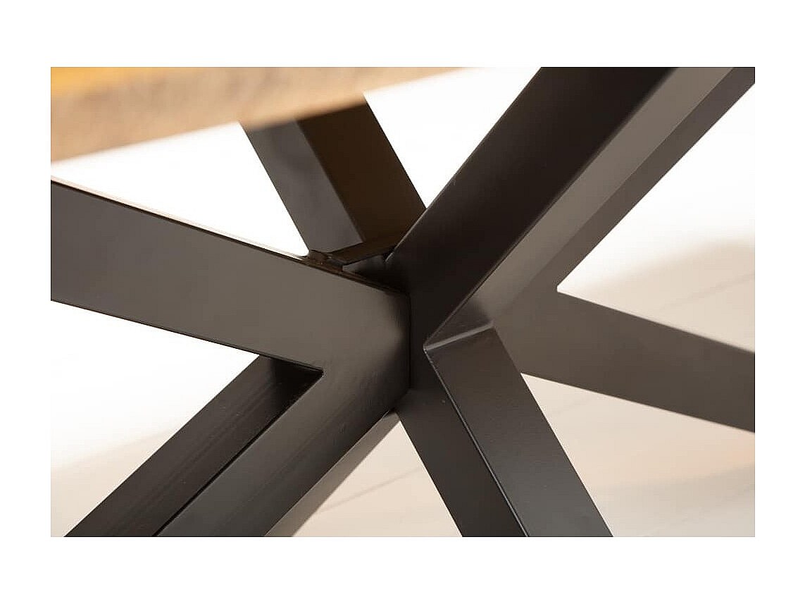 Table SOLARA 160 cm – Plateau en bois de manguier verni et structure en métal noir – Design industriel et charme unique