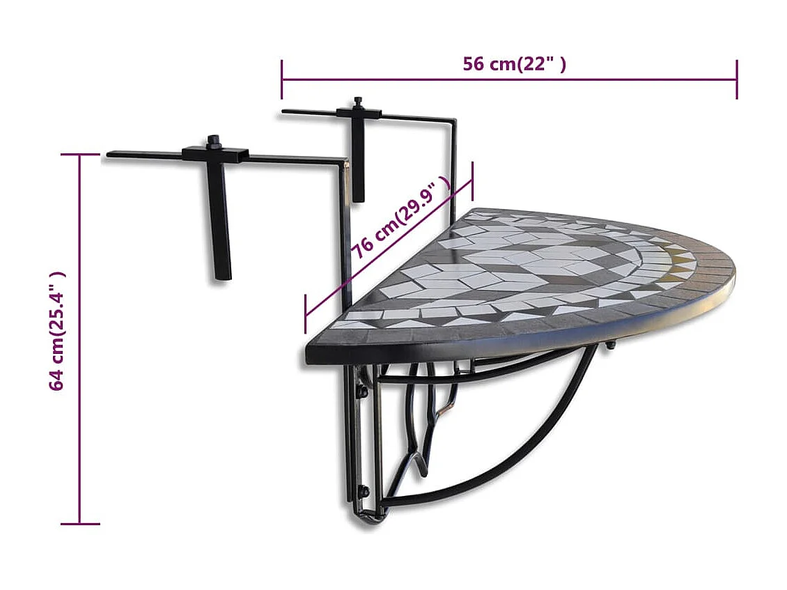 Table suspendue de balcon Noir et blanc Mosaïque