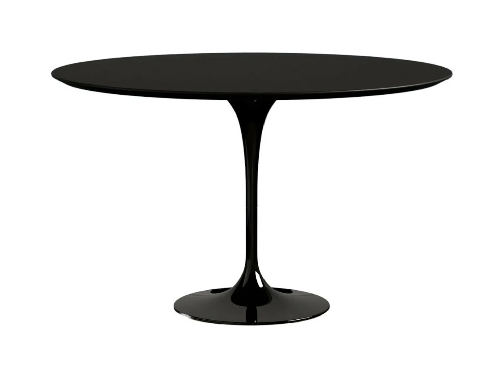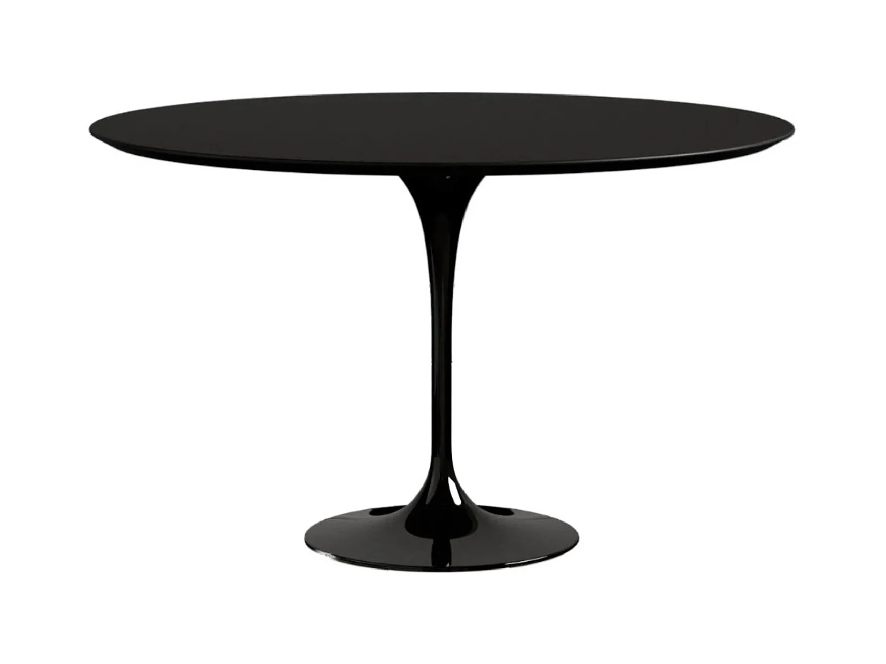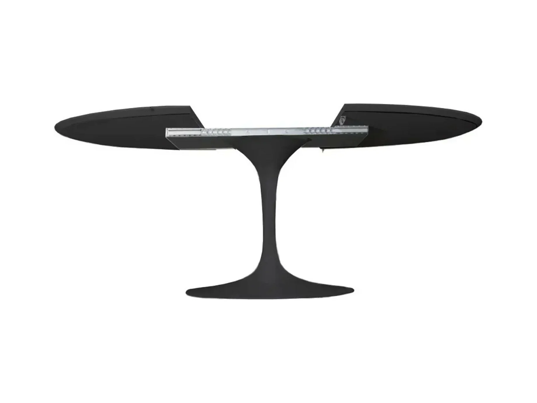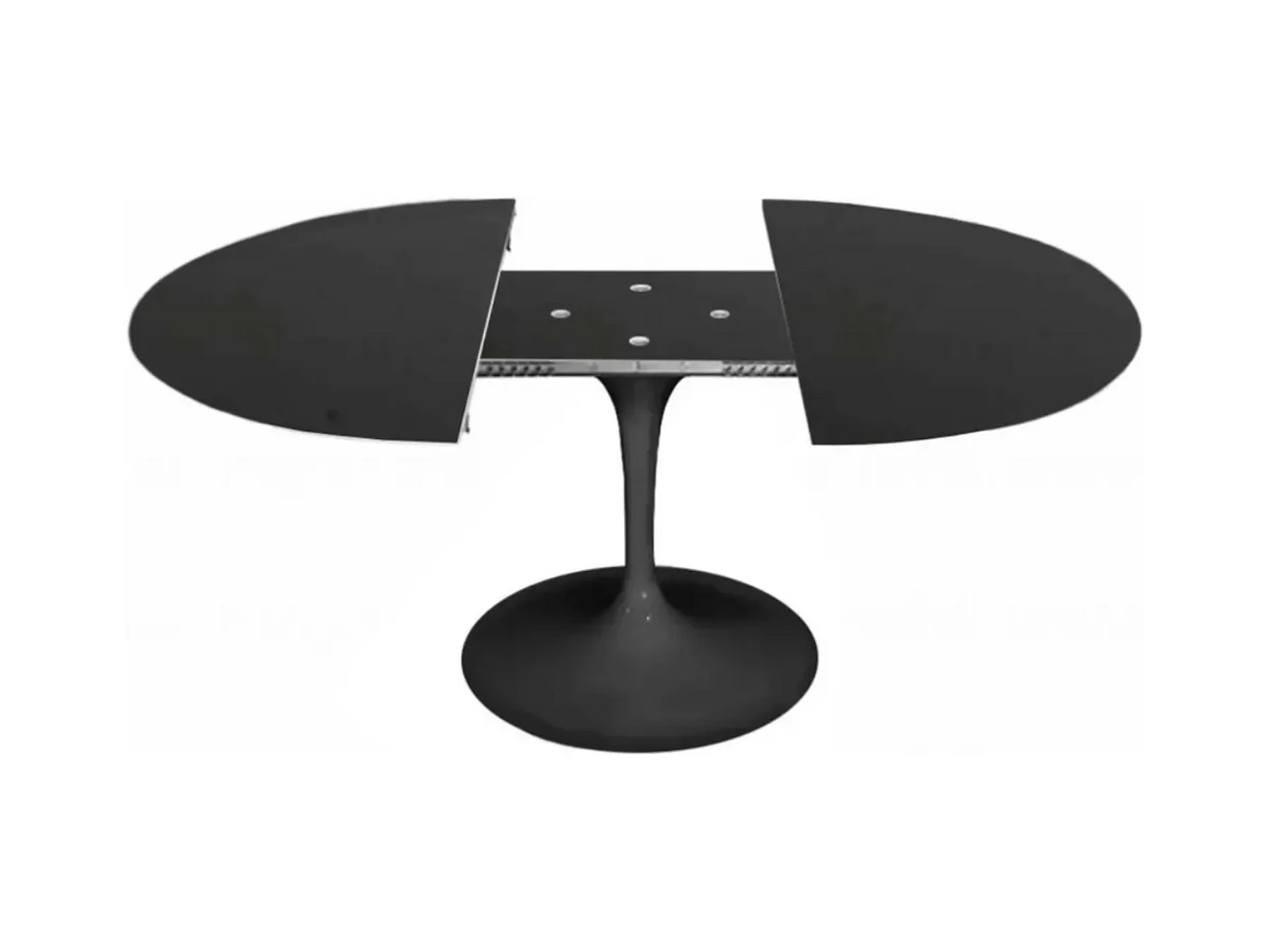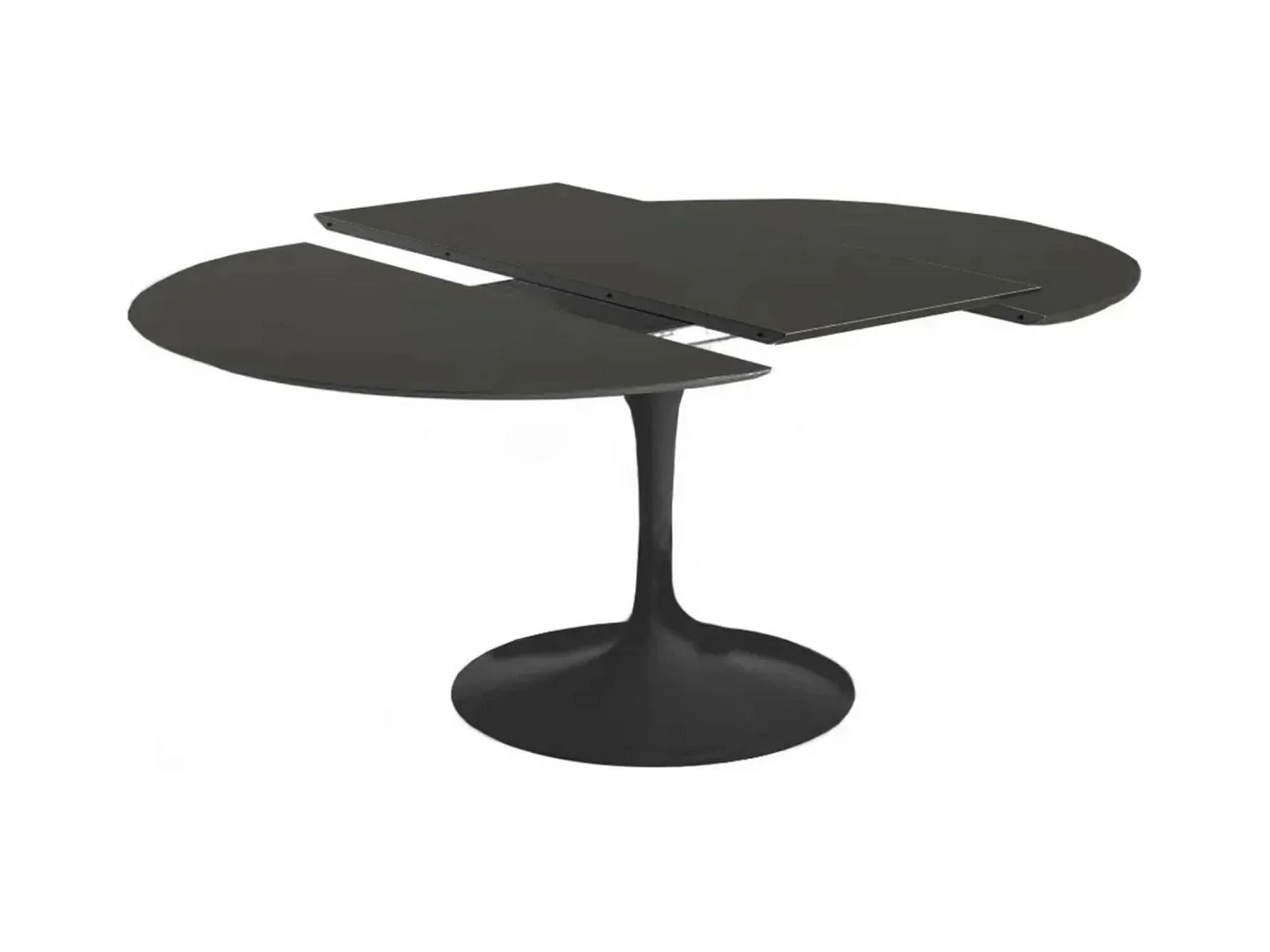Table tulipe ronde extensible-Plateau Noir mat-Largeur 107/152 cm-Piètement Noir brillant
