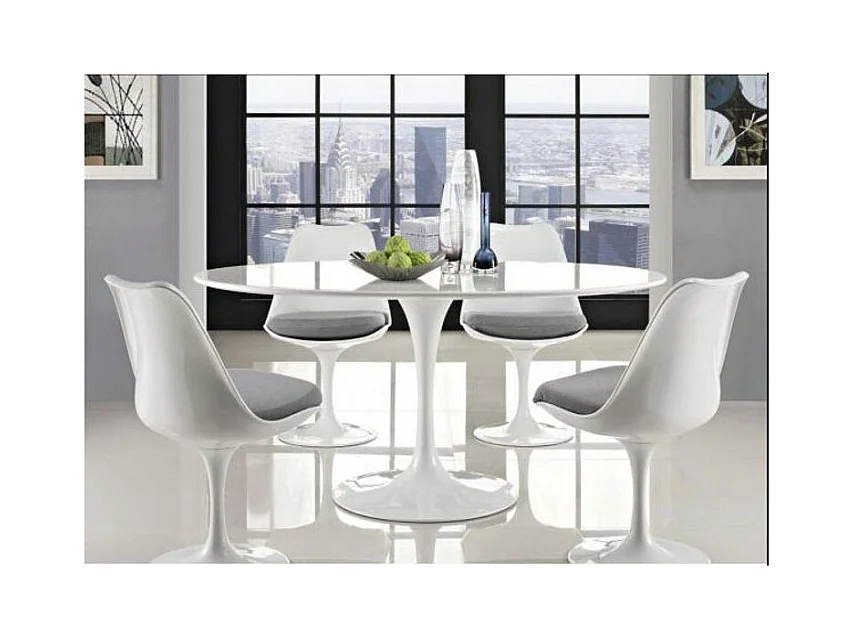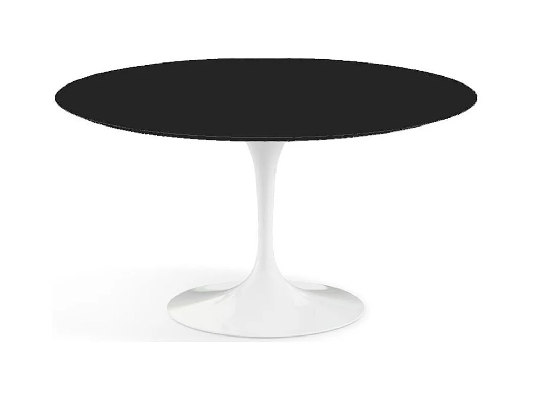 Table tulipe ronde-Plateau Noir mat-Diamètre 110 cm-Piètement Blanc mat