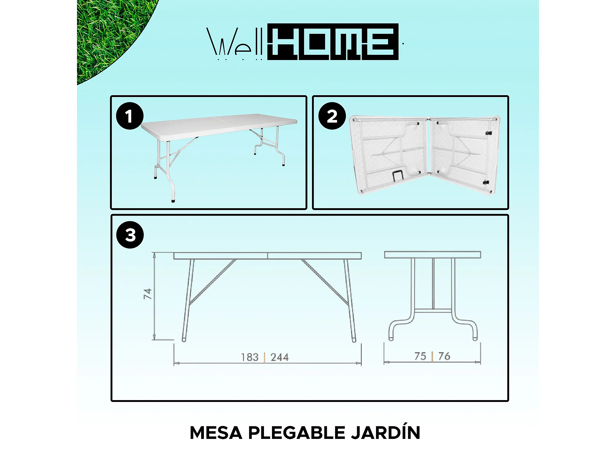 Table valise pliante avec structure métallique 180cm x 75cm x 74cm