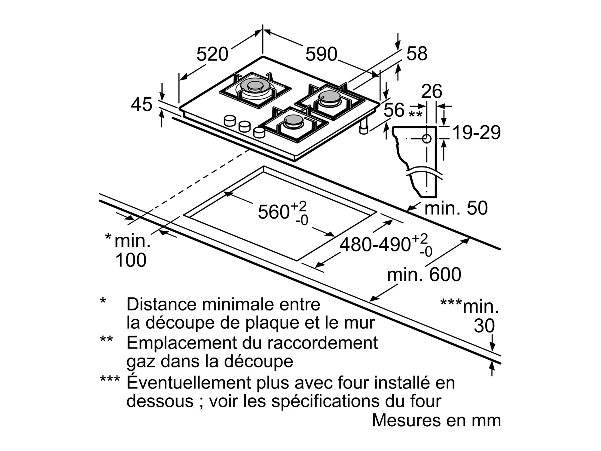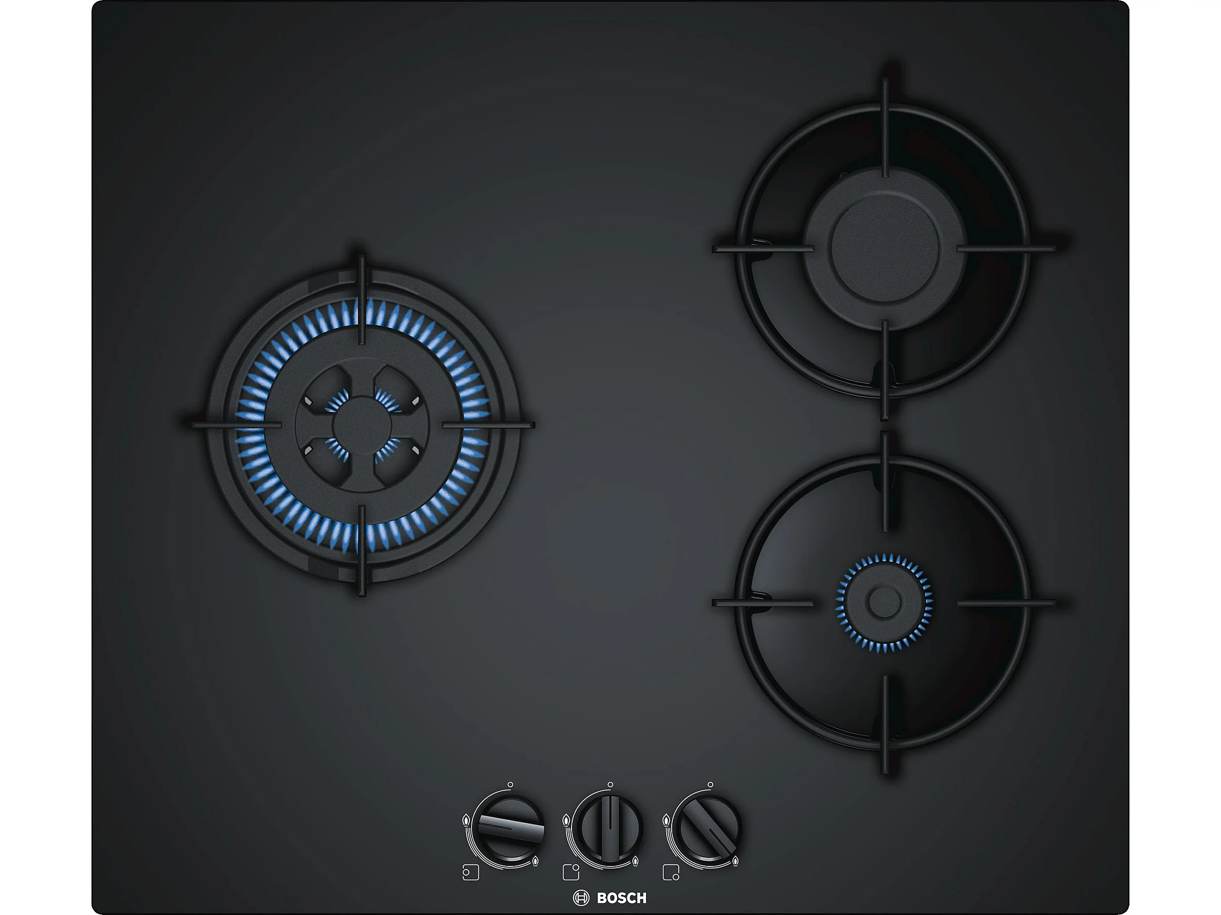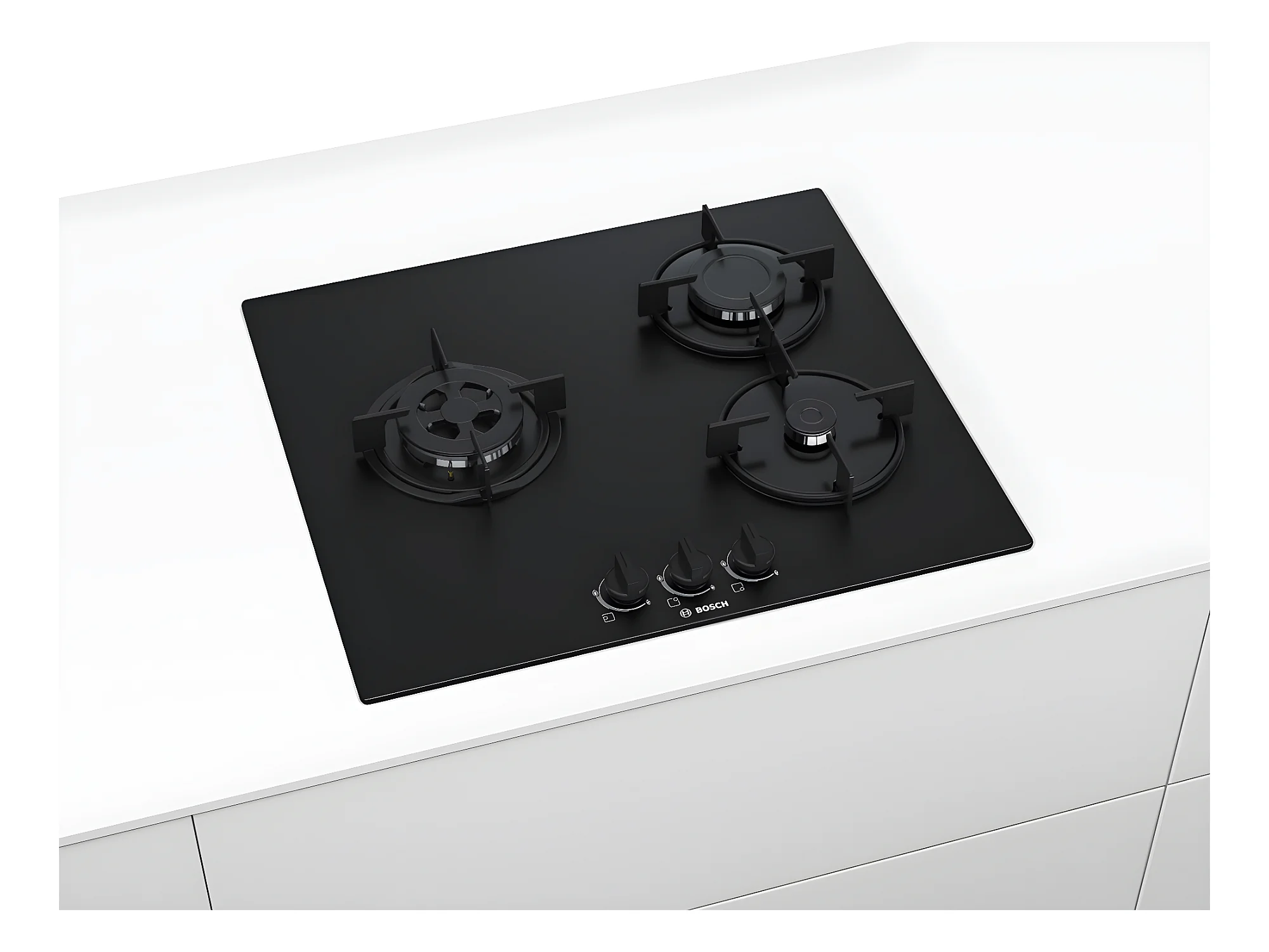 Bosch Table verre gaz 60cm 3 foyers noir - pnc6b6b10