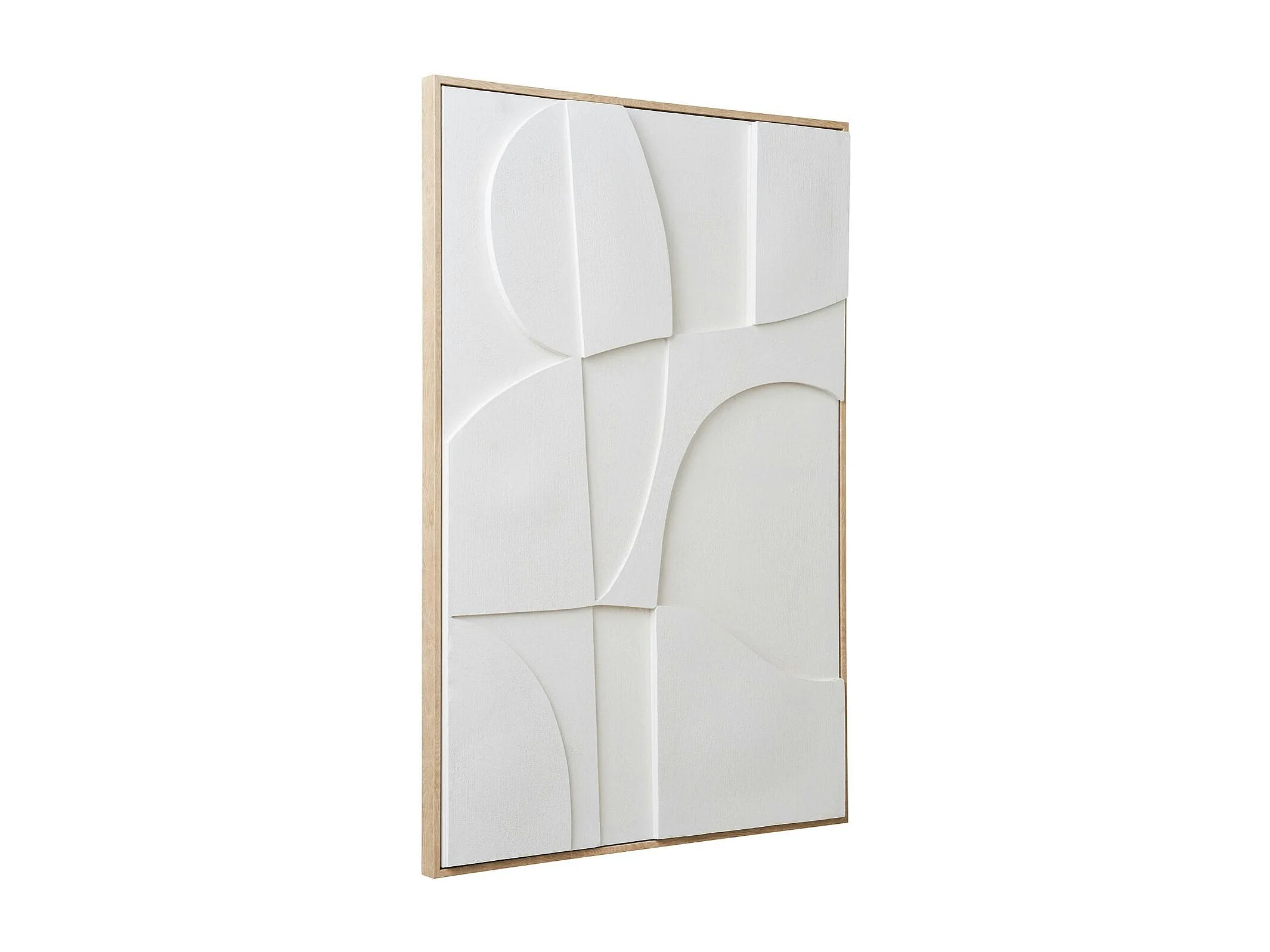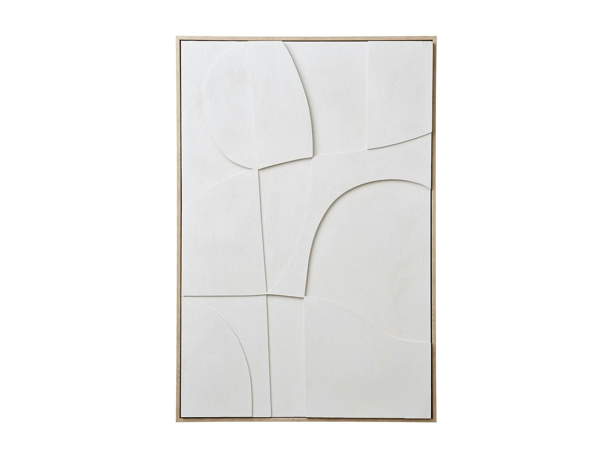 Tableau abstrait blanc formes organiques avec cadre 60x90 cm