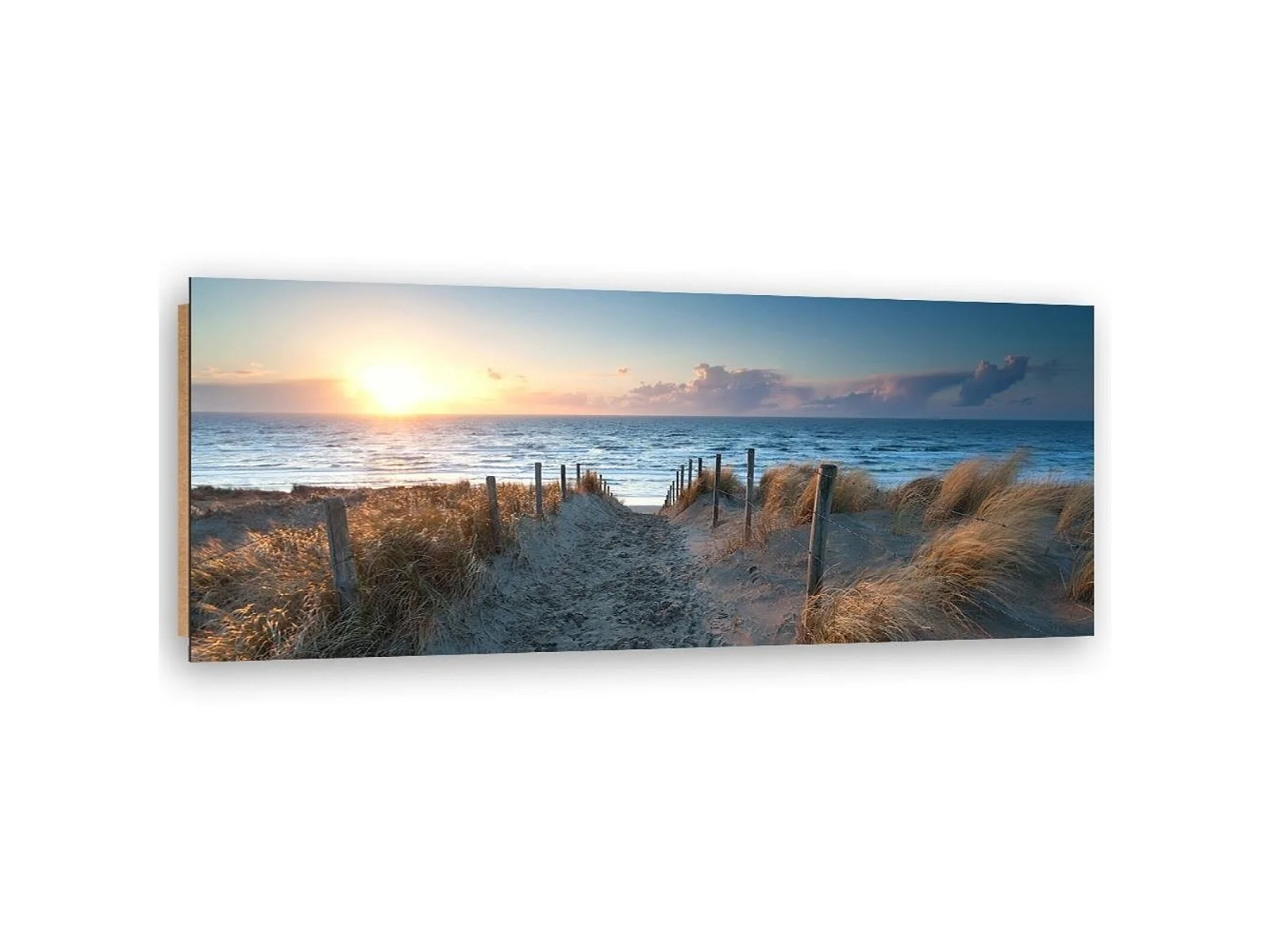Tableau bois coucher de soleil sur la mer - 90 x 30 cm