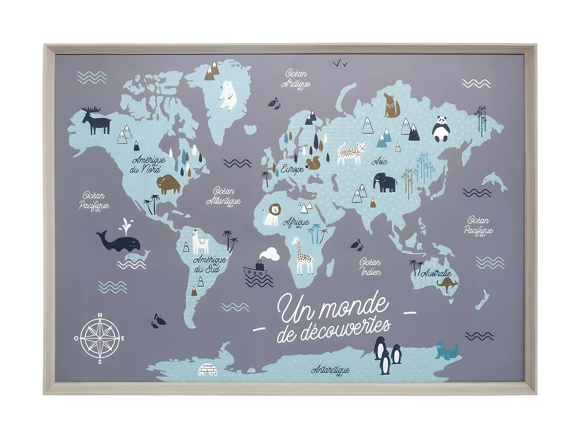 Tableau Déco murale Carte du monde 50 x 70 cm