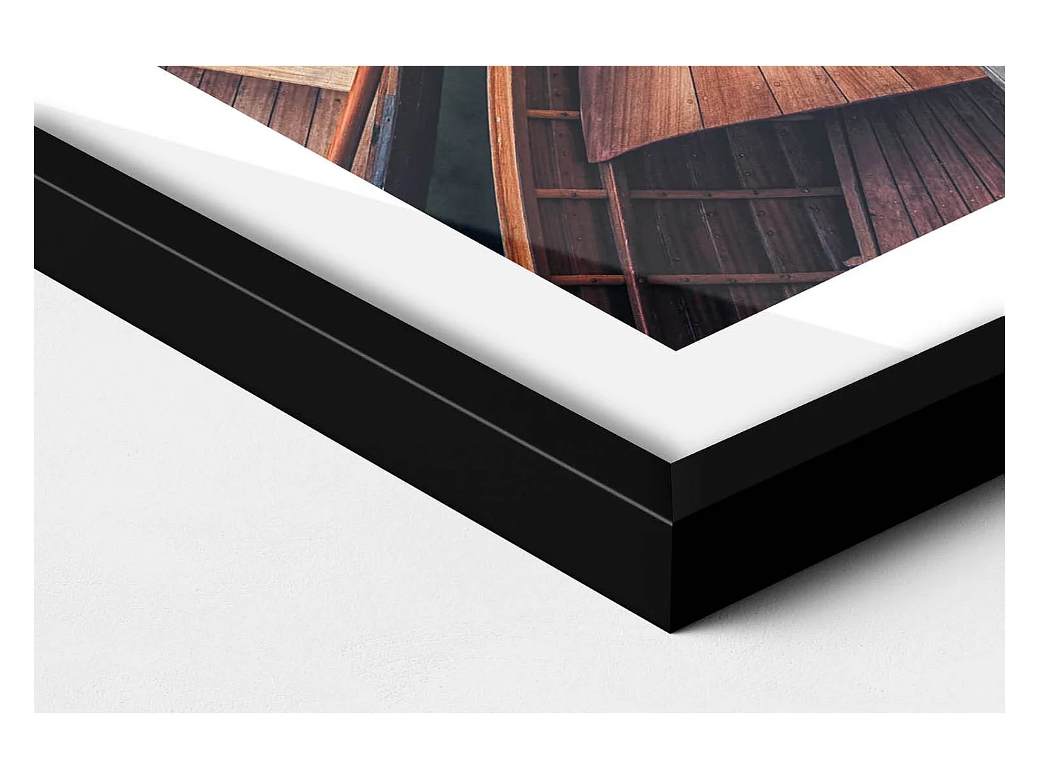 Tableau décoratif avec cadre noir, Bateaux sur le lac 50 x 70 cm– Parfait pour le salon ou la chambre