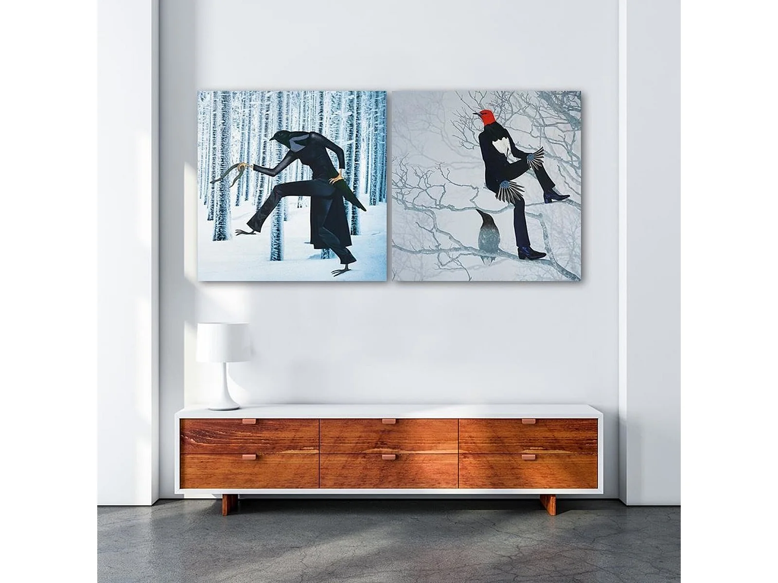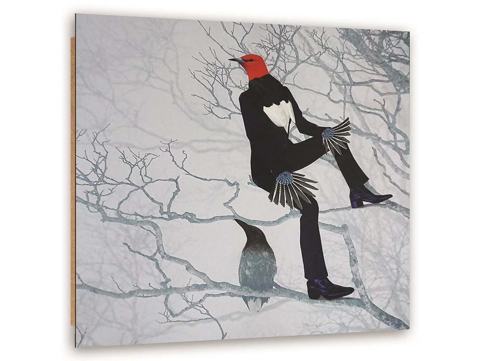 Tableau homme oiseau des bois - 80 x 80 cm
