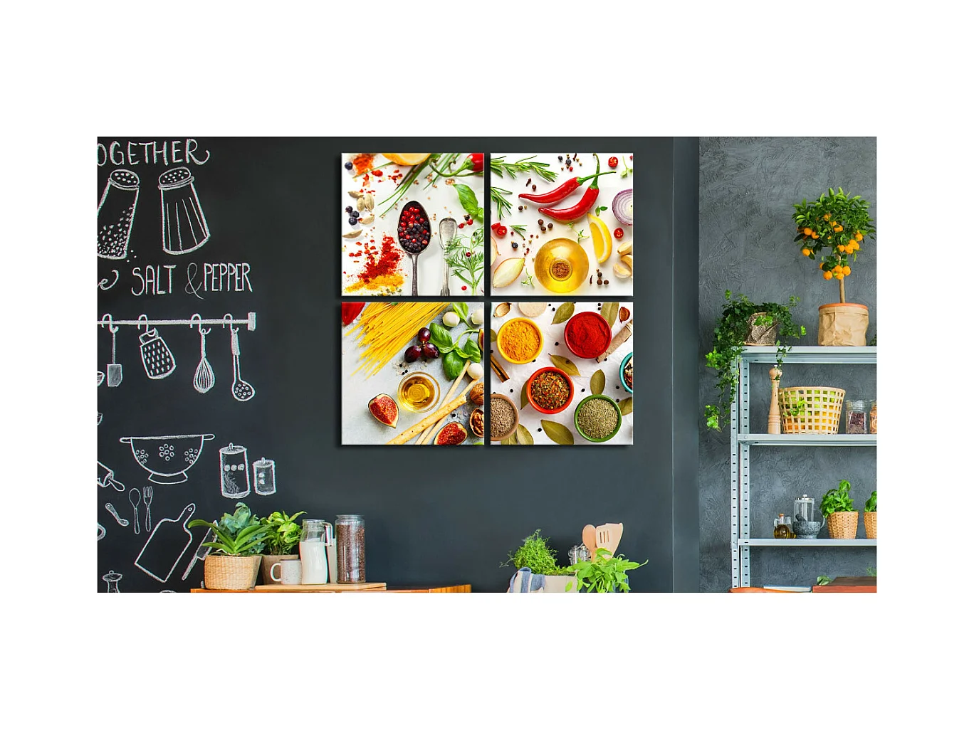 Tableau Imprimé 4 Panneaux "Spices of the World" 80 x 80 cm