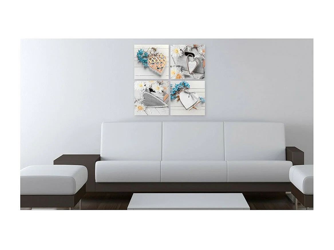 Tableau Imprimé "Flowers & Hearts" 40 x 40 cm