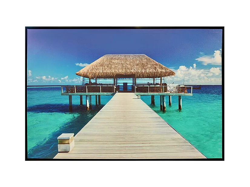 Tableau imprimé maison sur pilotis et cadre bois noir 60x90 cm - BORA
