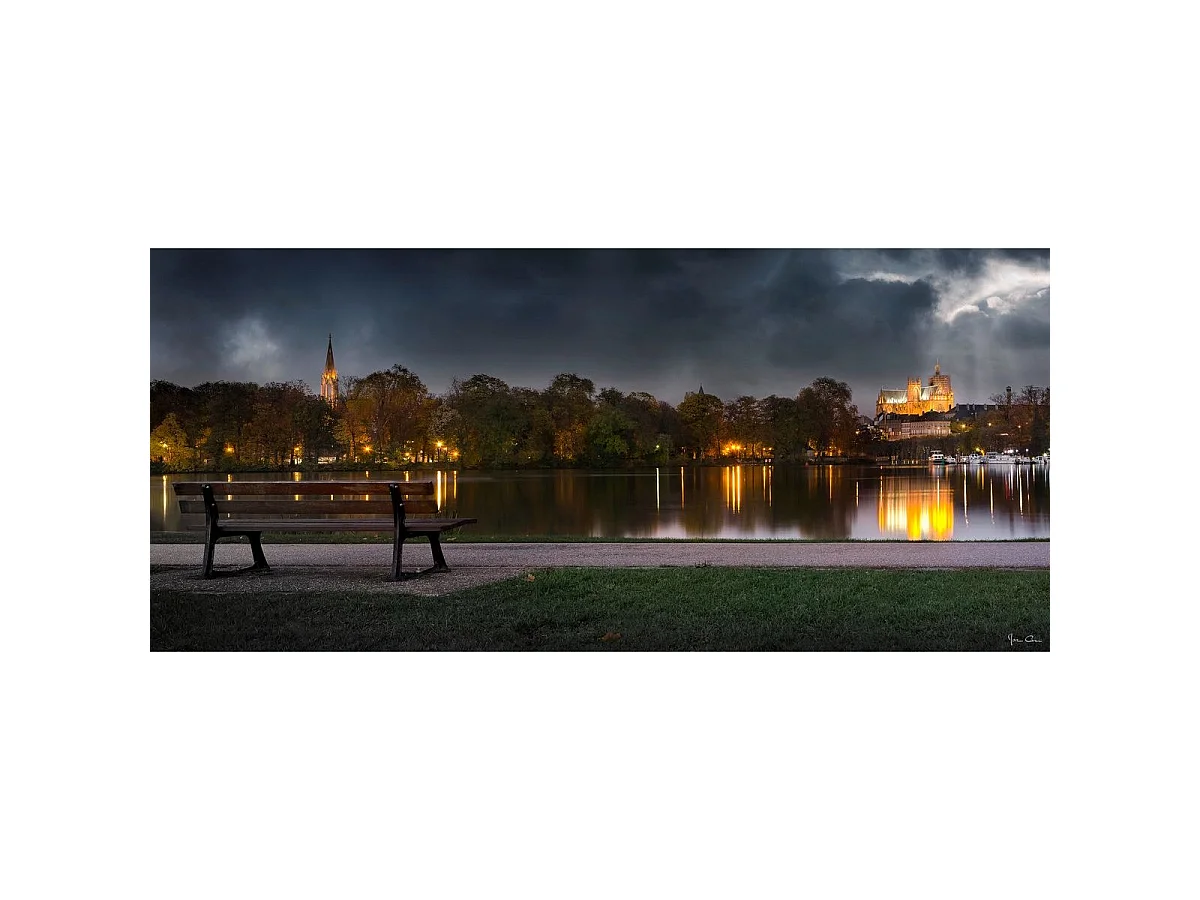 Tableau sur verre synthétique panorama plan d'eau Metz 65x145 cm