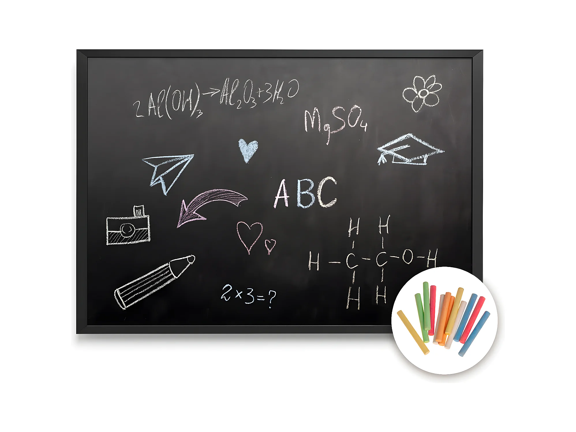 Tableau à craie 70x50 cm couleur cadre noir, craie de couleur gratuite NIVEAU VERTICAL, tableau à craie pour la maison, organisation esthétique des notes au bureau