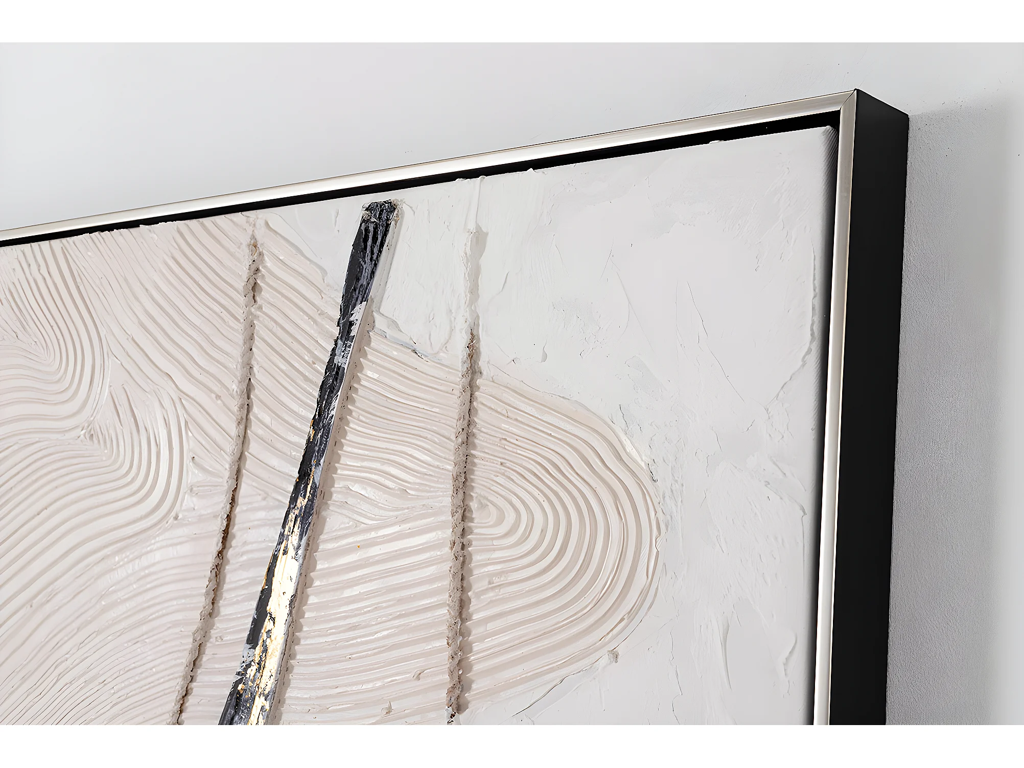 Tableau peinture à l'huile sur toile, peinte avec cadre en bois noir et argenté