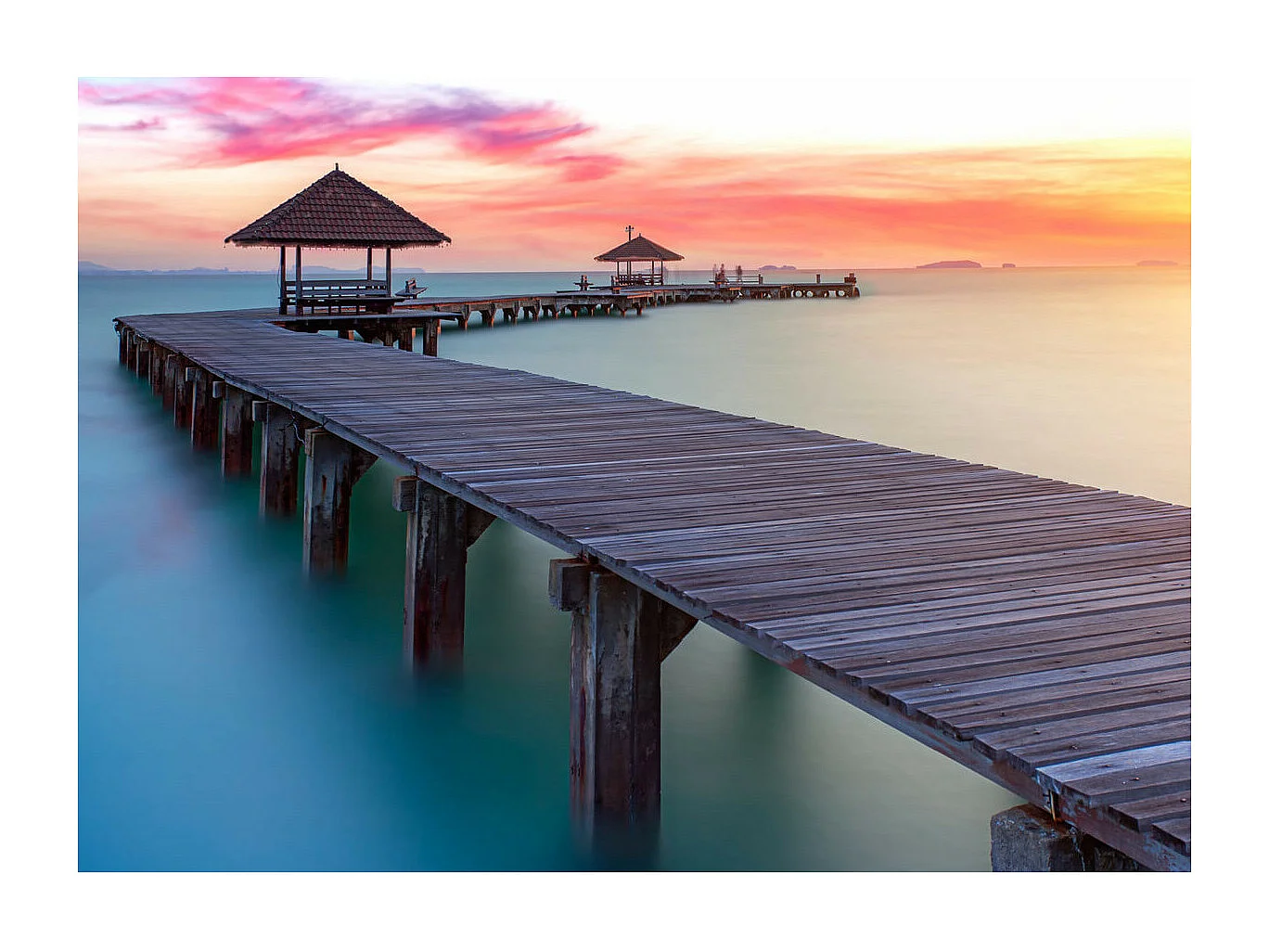 Tableau sur verre ponton crépusculaire 30x45 cm