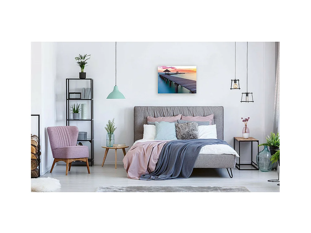 Tableau sur verre ponton crépusculaire 45x65 cm