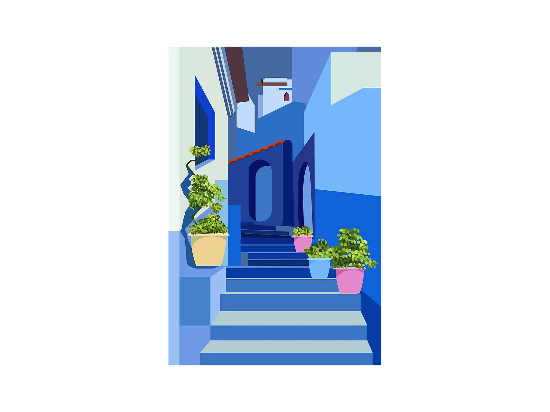 Tableau sur verre synthétique illustration escalier 65x97 cm