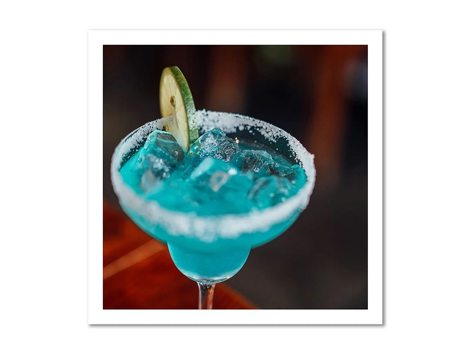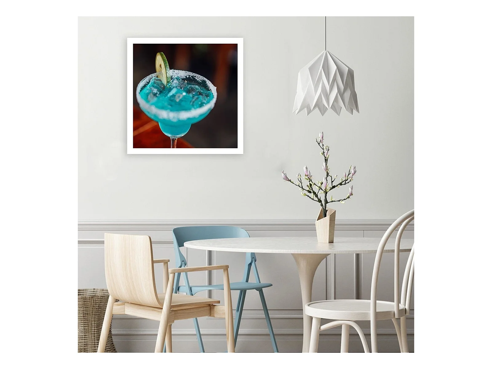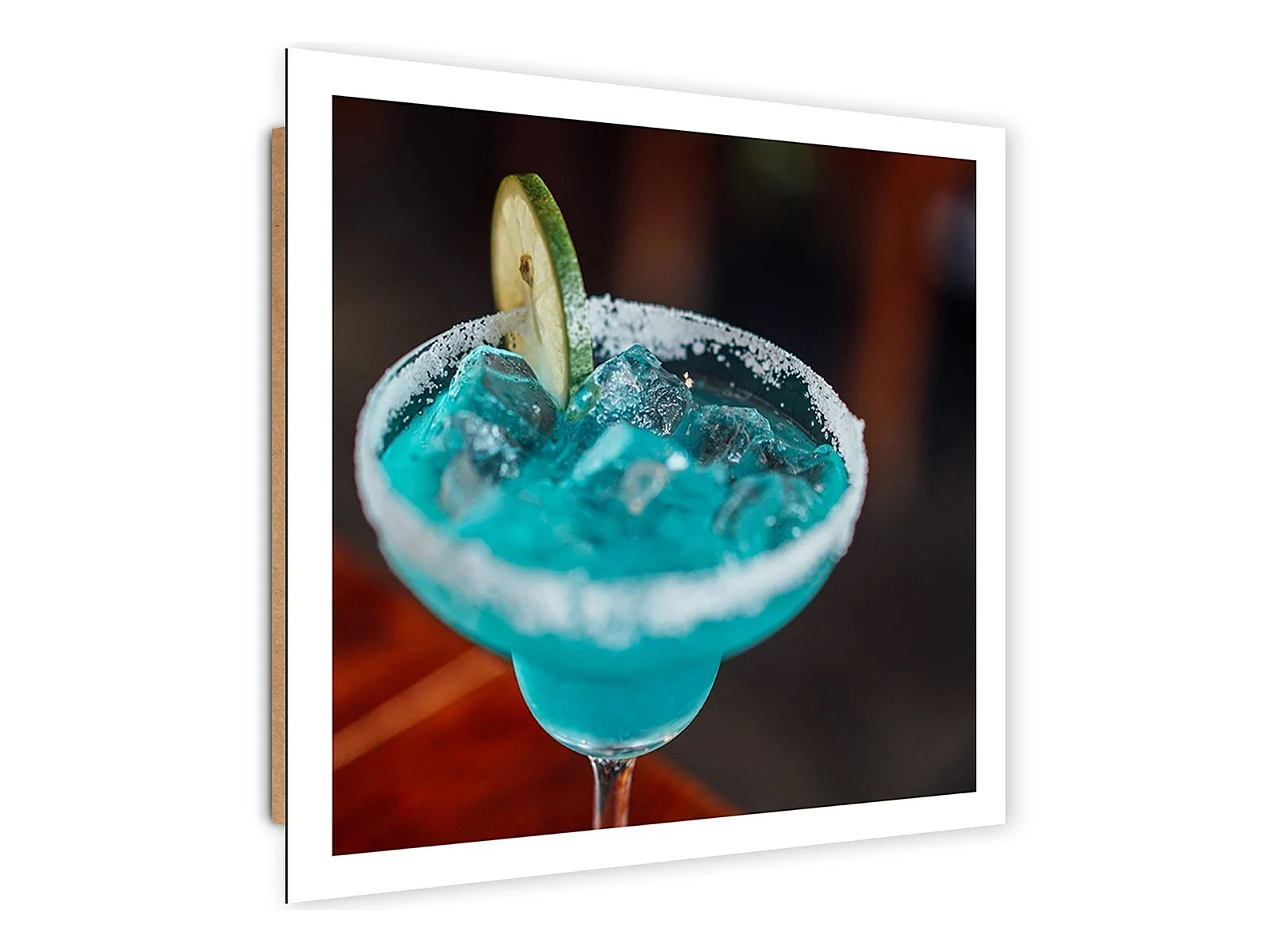 Tableau verre de bois avec une boisson bleue - 50 x 50 cm