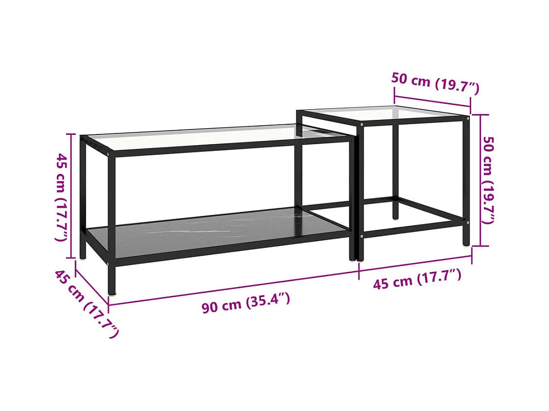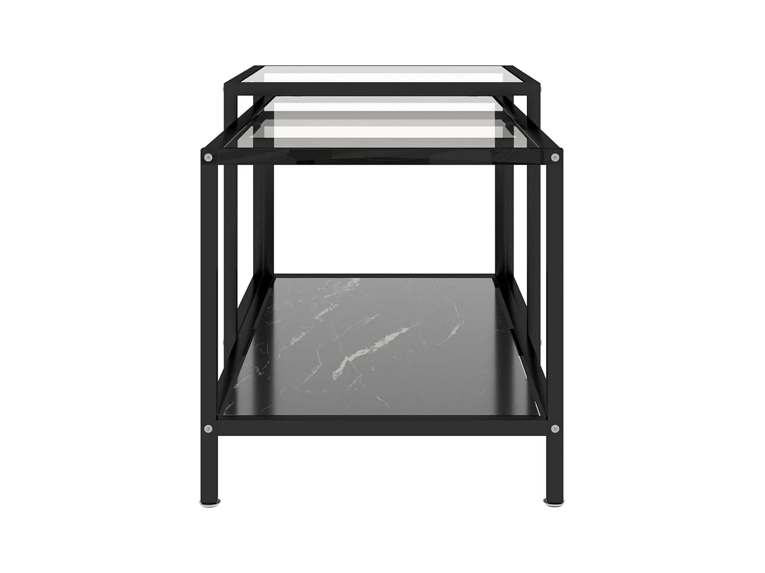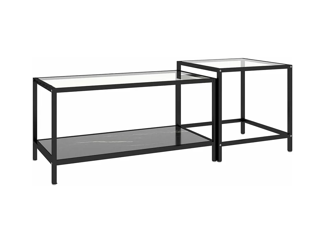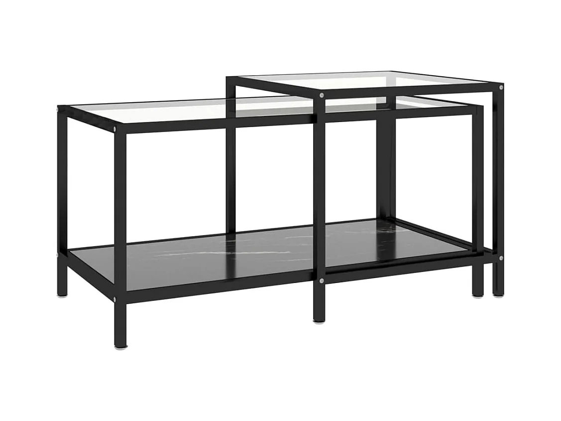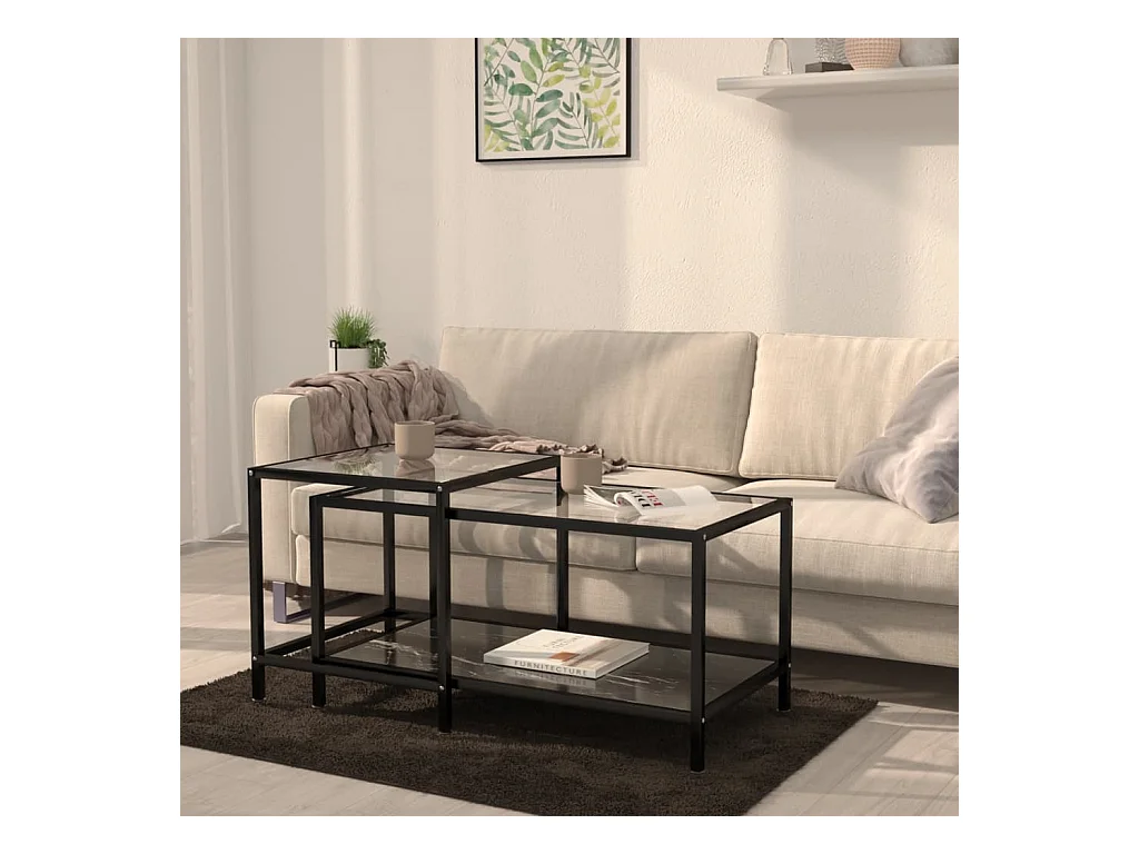 Set de 2 tables basses gigognes Laxå de tailles différentes verre trempé de 4 mm métal noir [en.casa]