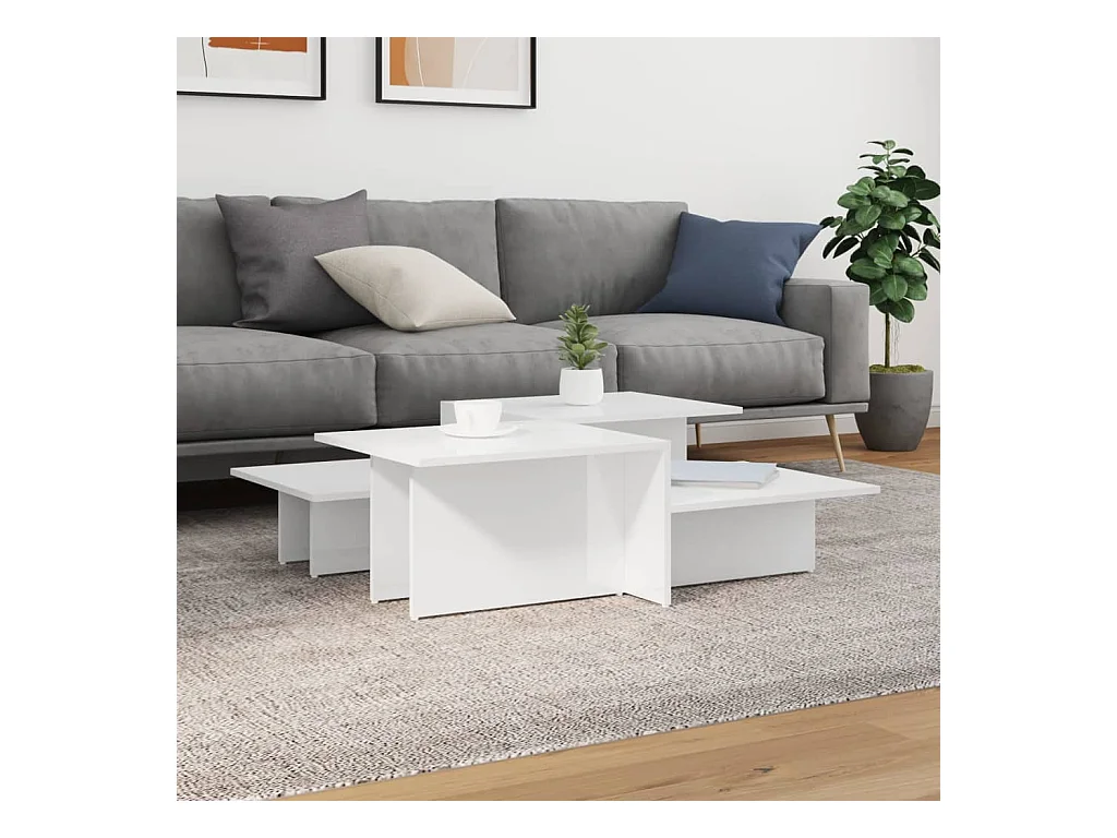 Tables basses 2 pcs blanc brillant bois d'ingénierie