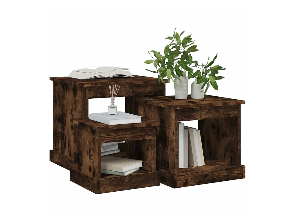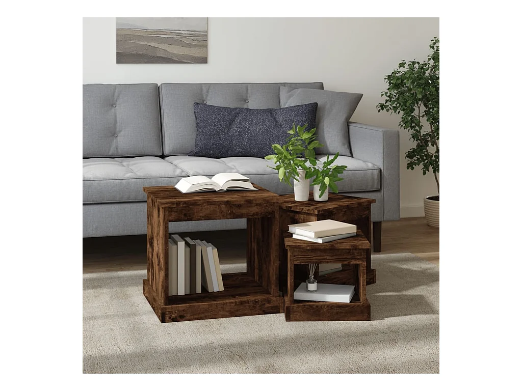 Tables basses 3 pcs chêne fumé bois d'ingénierie GHR58003