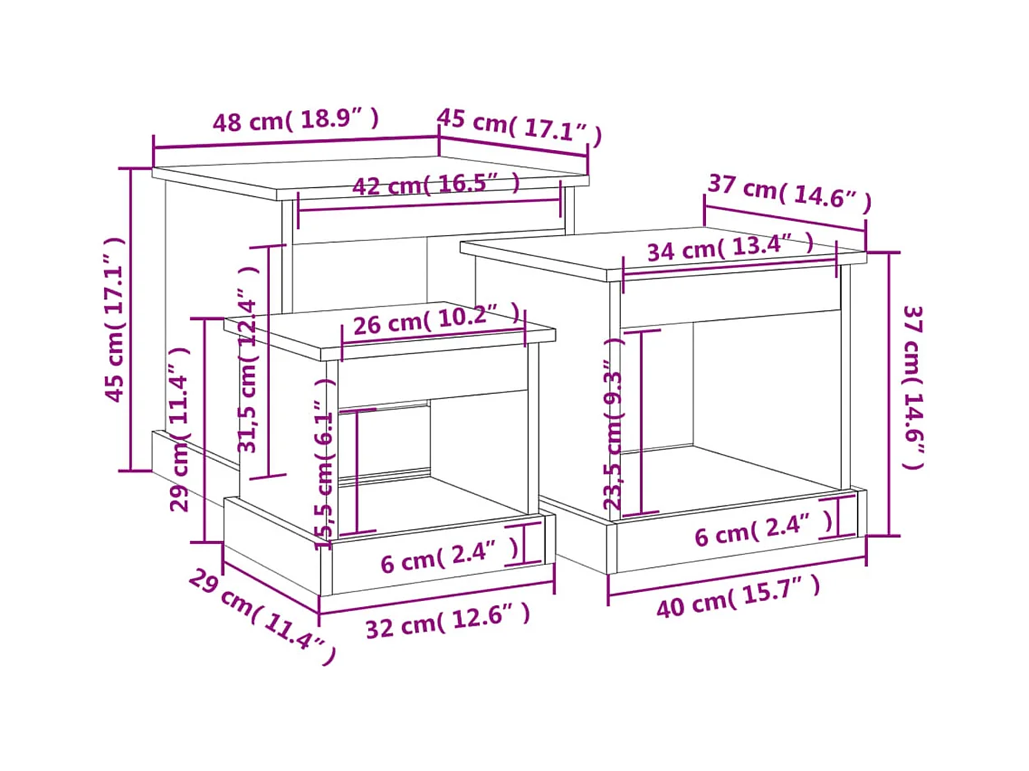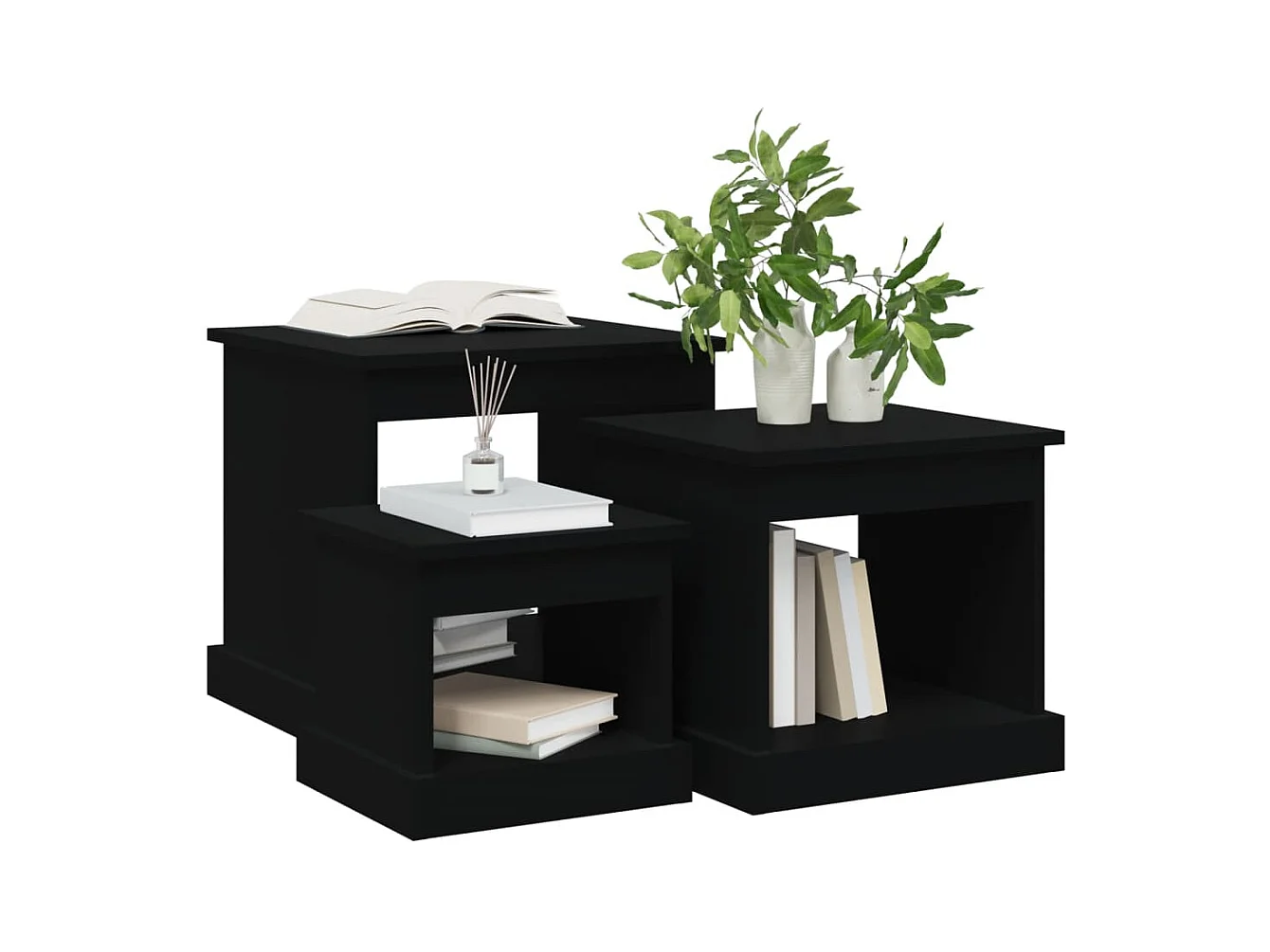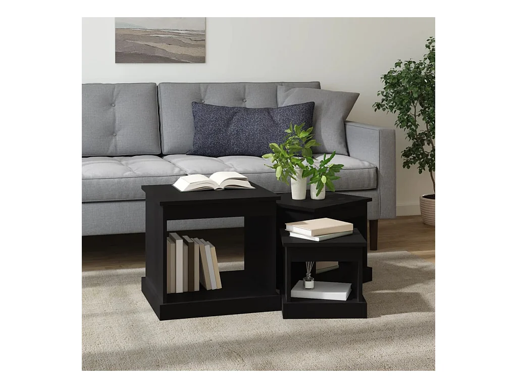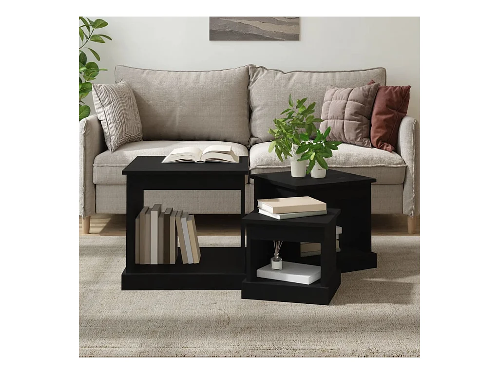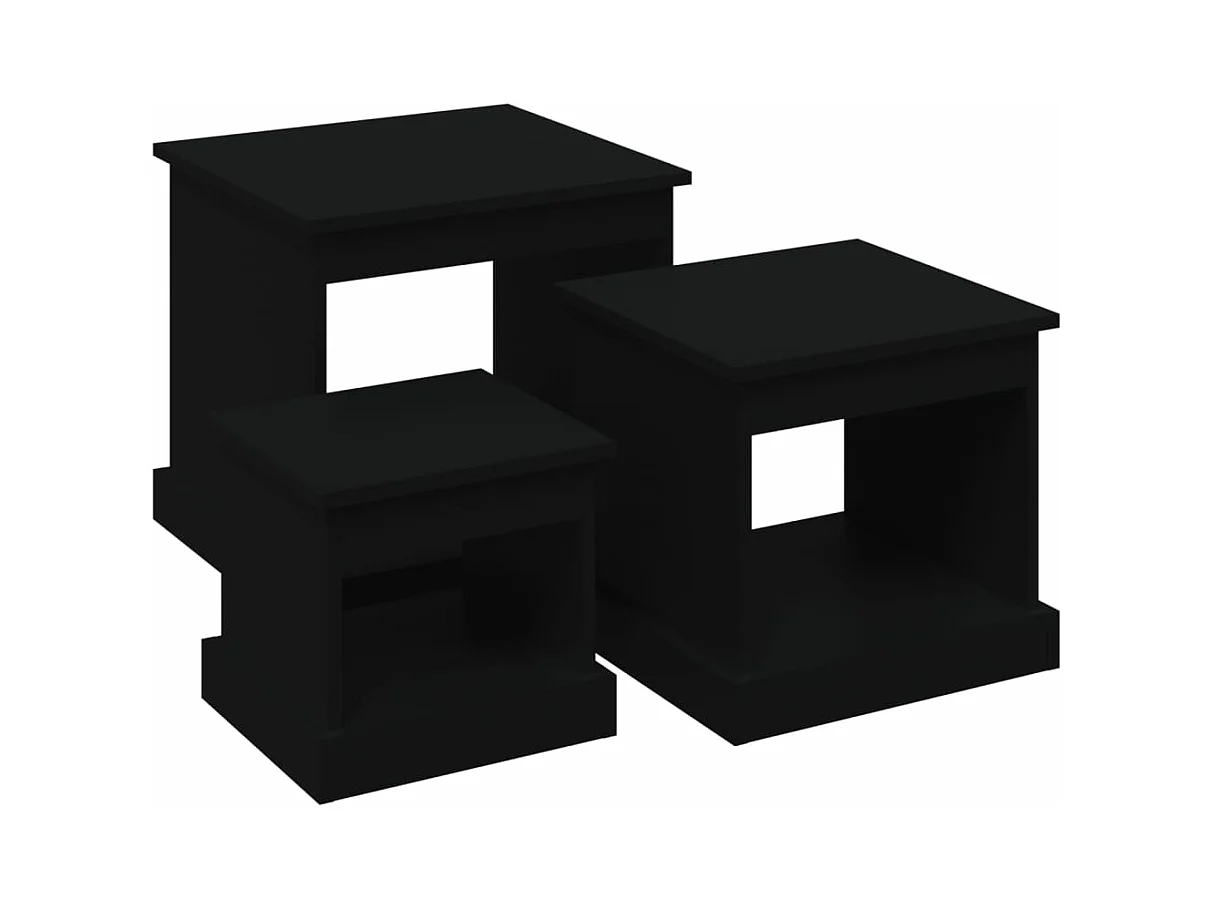 Tables basses 3 pcs noir bois d'ingénierie