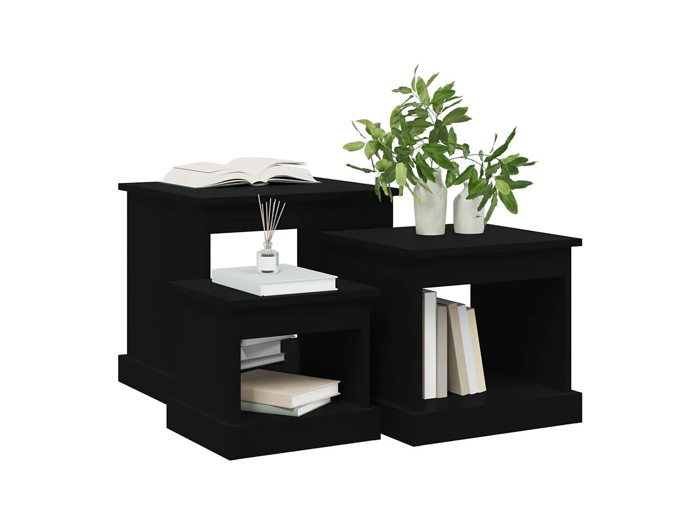 Tables basses 3 pcs noir bois d'ingénierie GHR22229