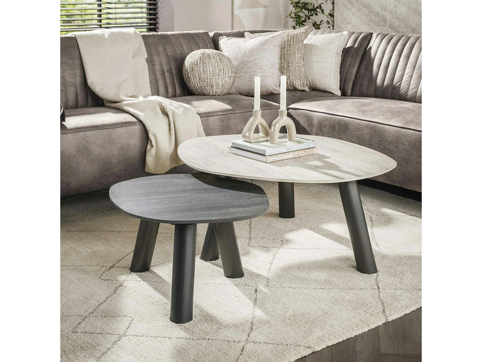 Tables basses design céramique 3D gris clair & foncé (x2) GALWAY