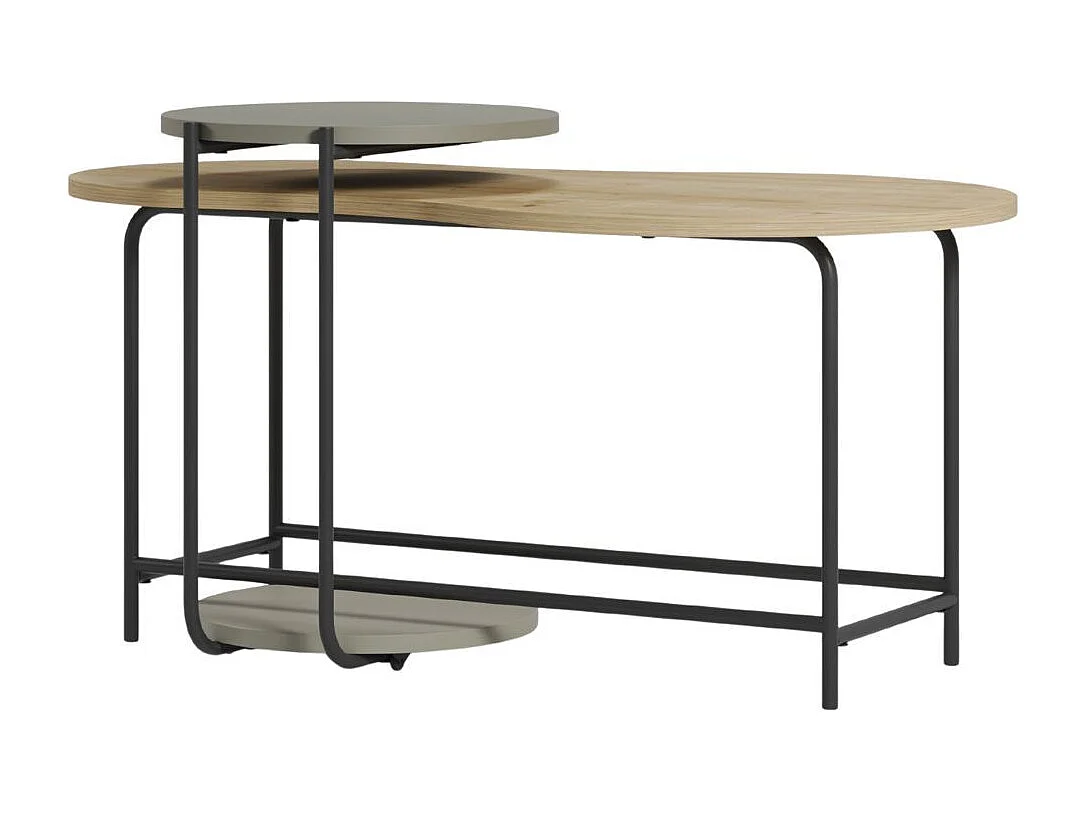 Tables basses gigogne 1 ovale plateau imitation bois et 1 ronde plateau vert sauge piètement métal noir - RHEA